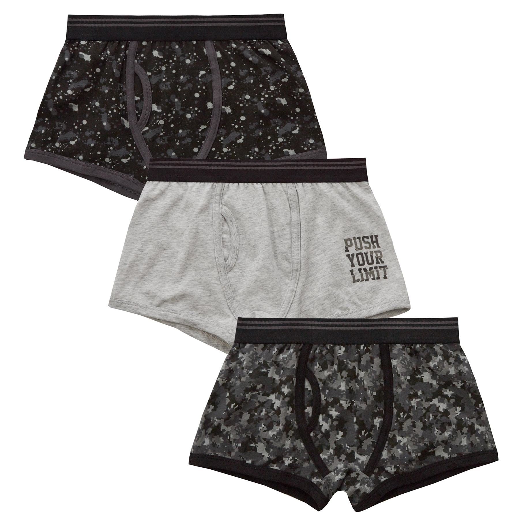 Boys' trunk fit boxer shorts 3 pack, with industrial design.