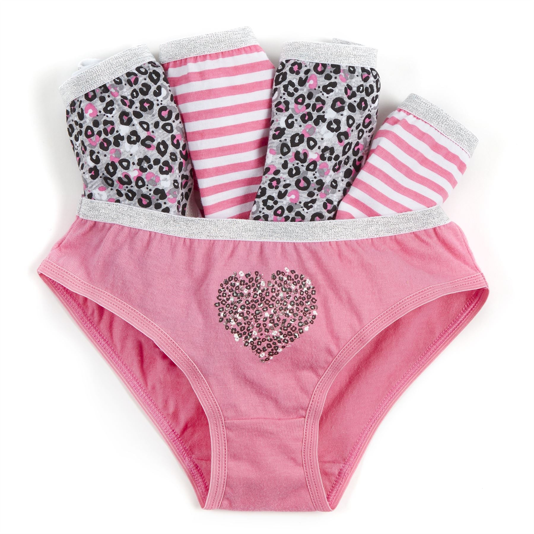 Girls' 100% cotton briefs 5 pack, with animal/stripe designs.