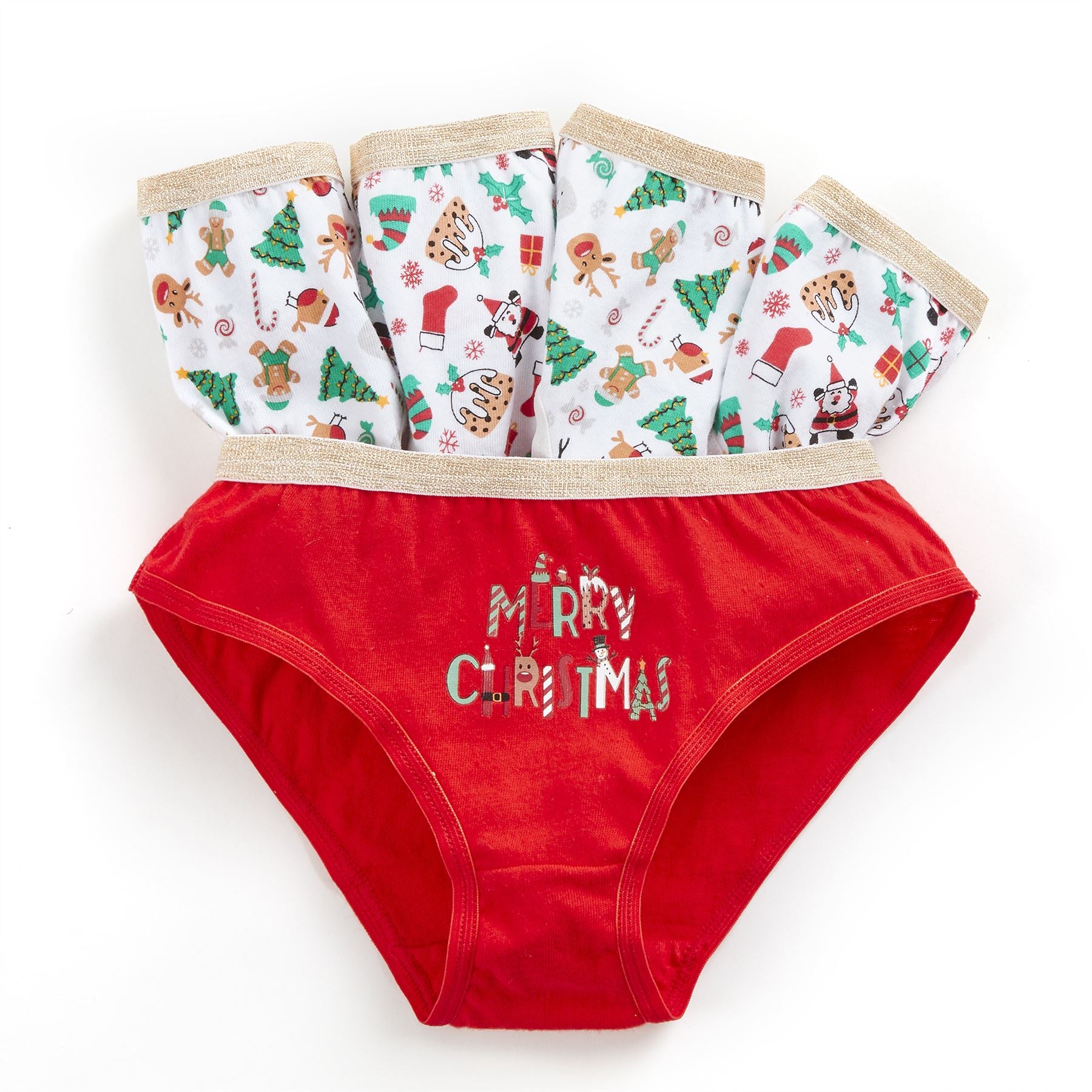 4Kidz Girls Briefs 5 Pack - Christmas (2-6 Years)