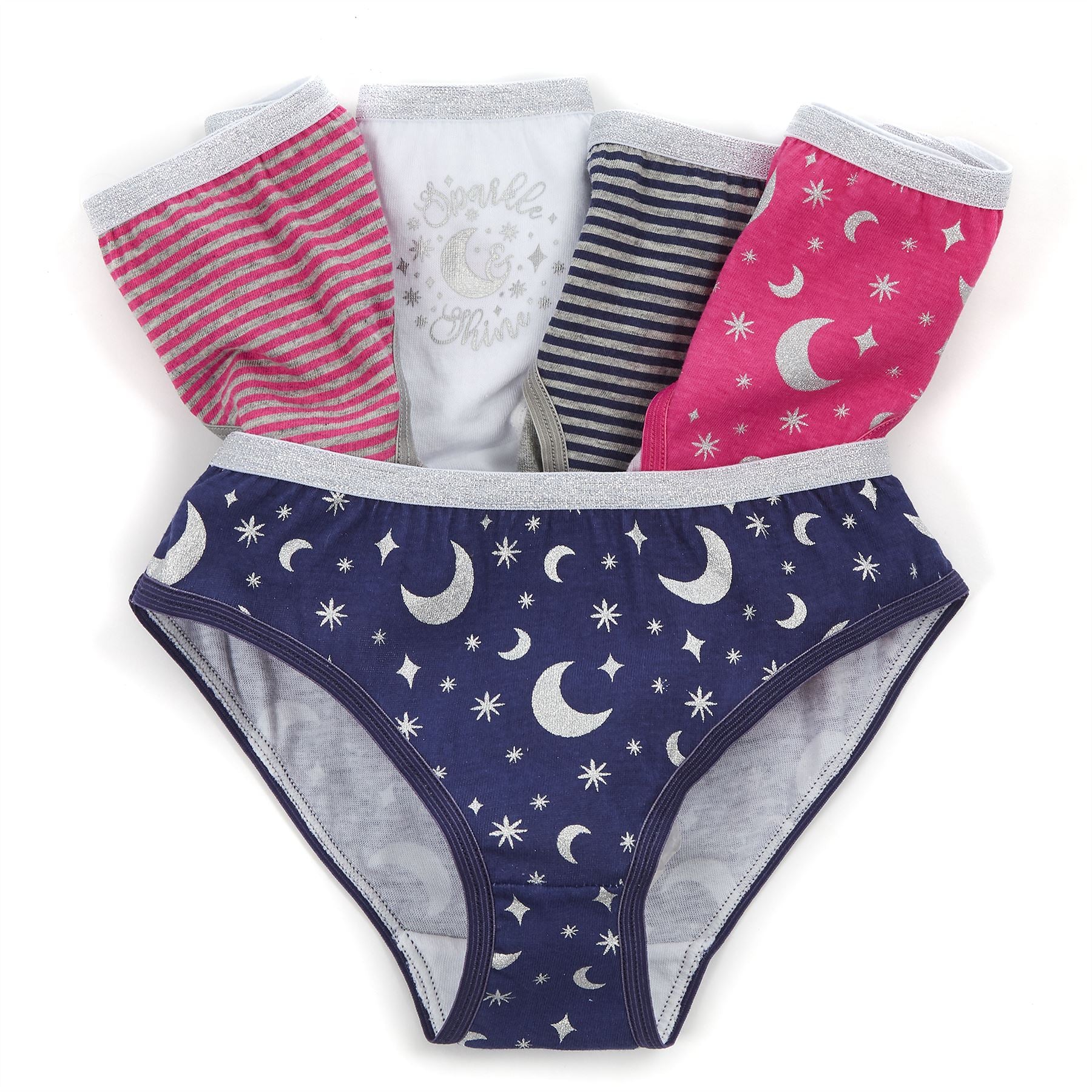 Girls 100% cotton briefs 5 pack, with moon designs.