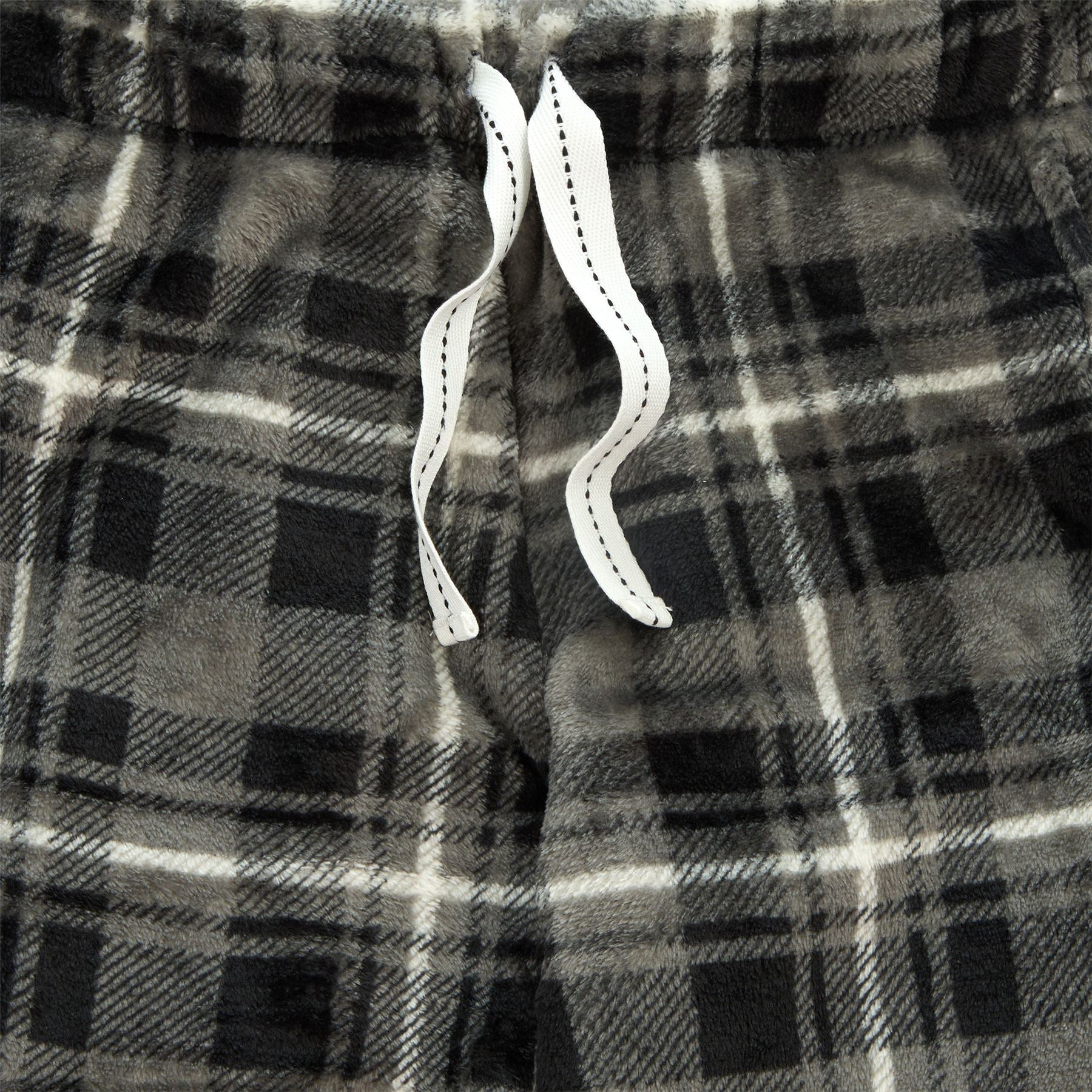 Boys' charcoal fleece lounge pants with a drawstring elasticated waist, side pockets and check print.