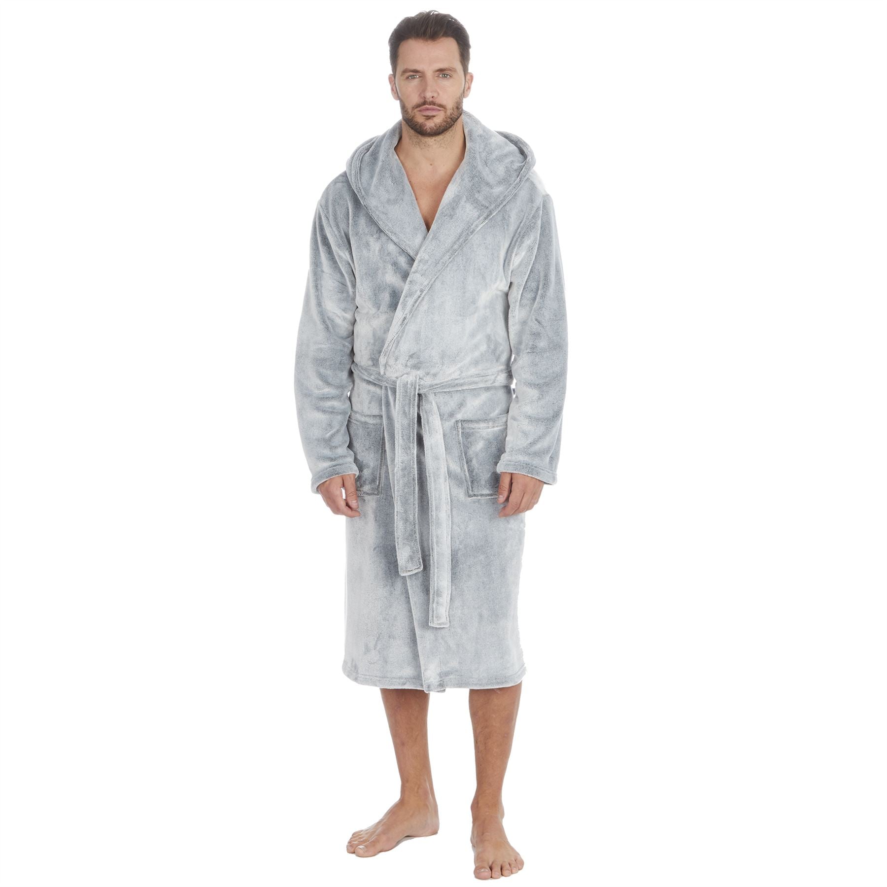 Cargo Bay Mens Frosted Flannel Fleece Hooded Robe - Grey