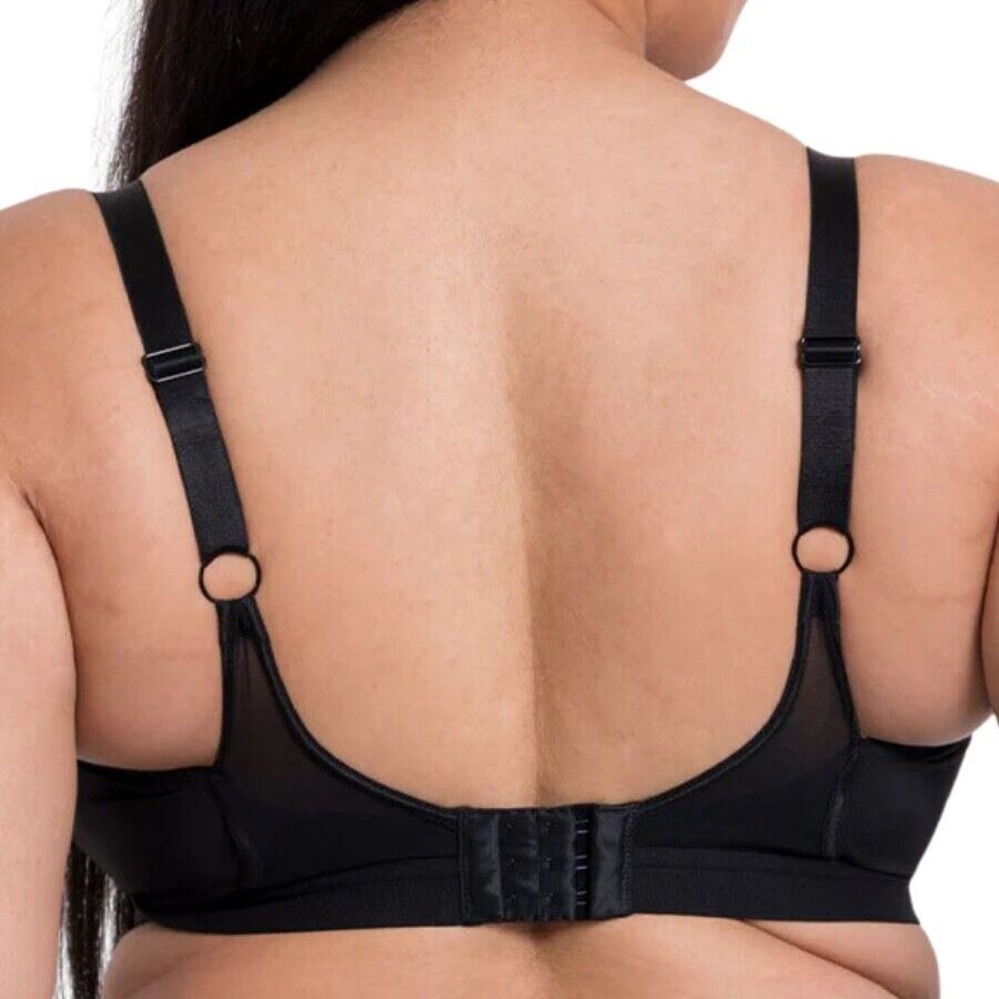 Curvy Kate Get Up and Chill bralette in black. It features lightweight, mesh support, elastic underband and a keyhole centre at the front. The bralette is unpadded and non wired, with fully adjustable straps and a hook and eye fastening.