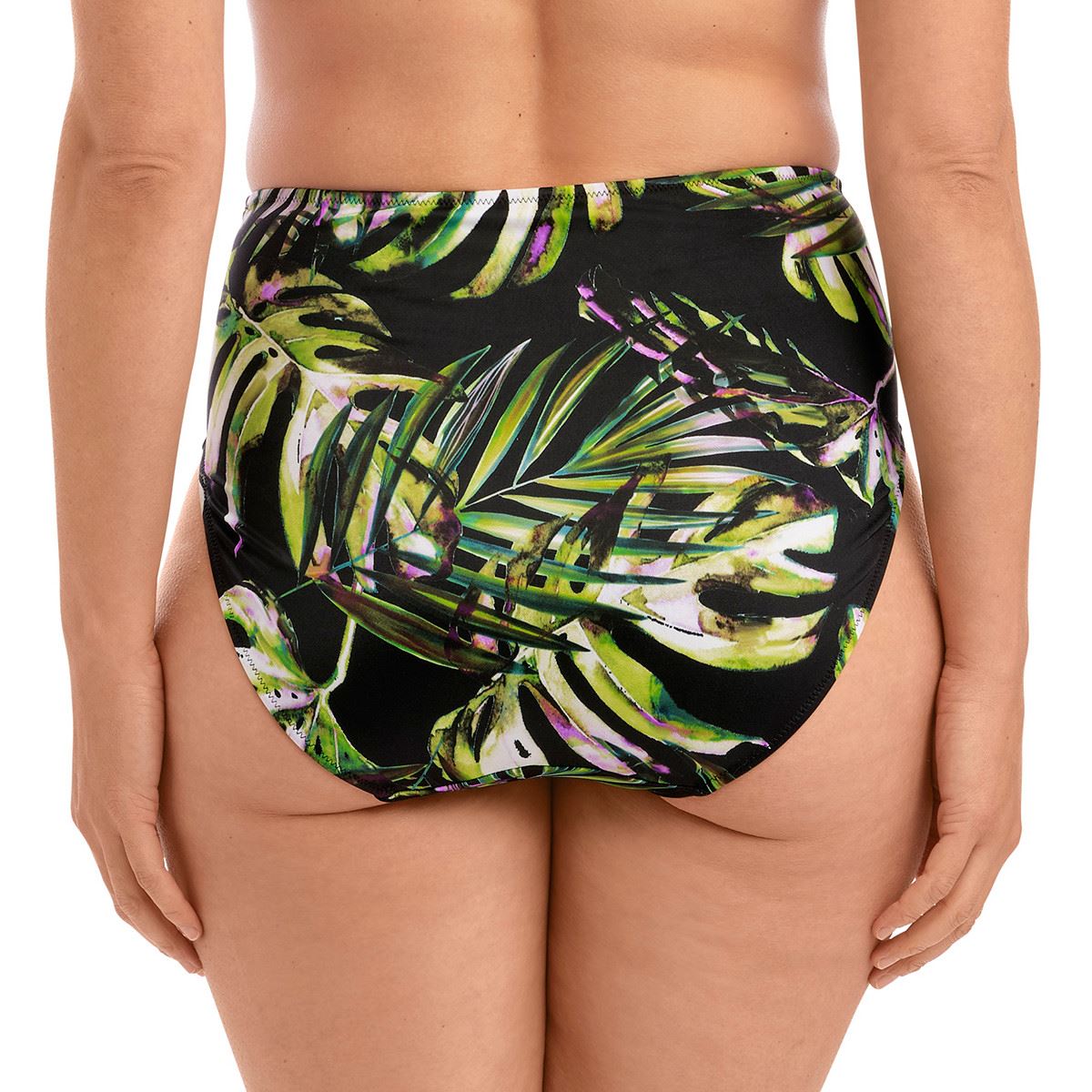 Fantasie Swimwear Palm Valley high waist bikini brief in black, with leafy palm print.