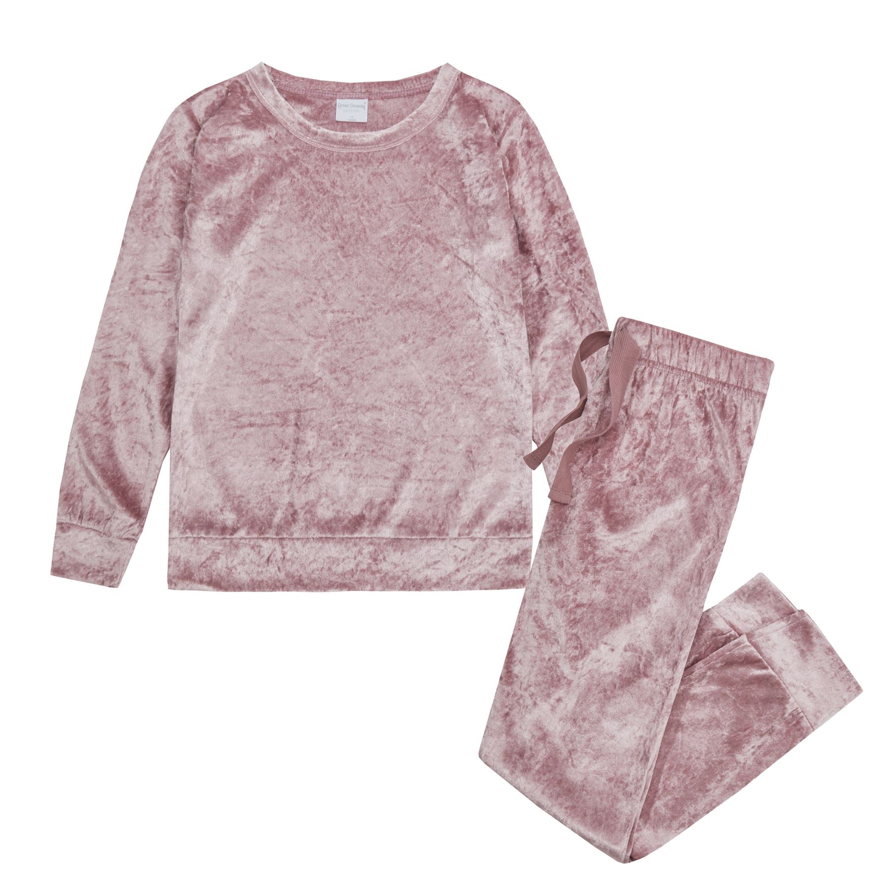 Girls' crushed velvet pyjama set with a round neck top, in pink.