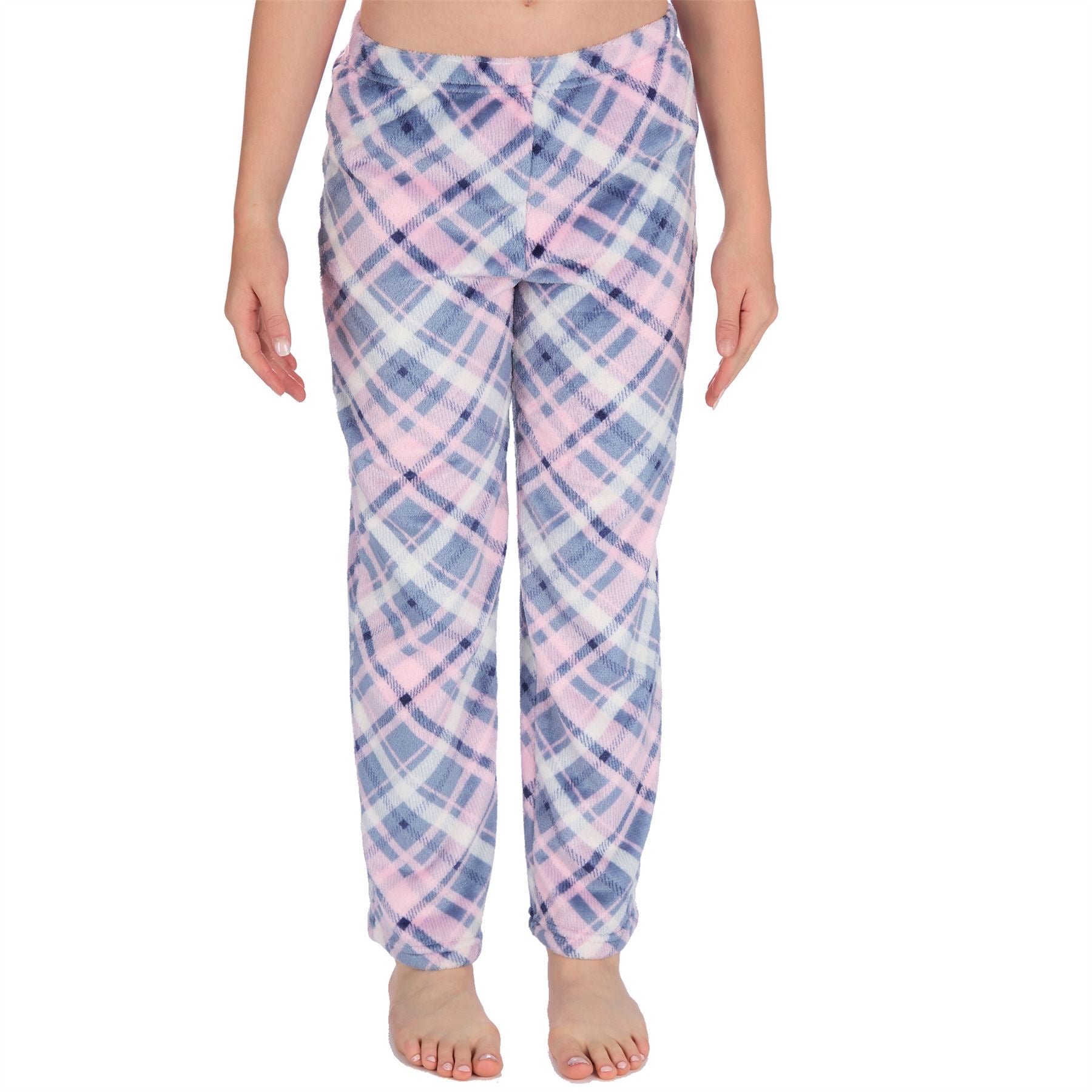 Girls' soft handle fleece lounge pants with an elasticated waist and diagonal check print.