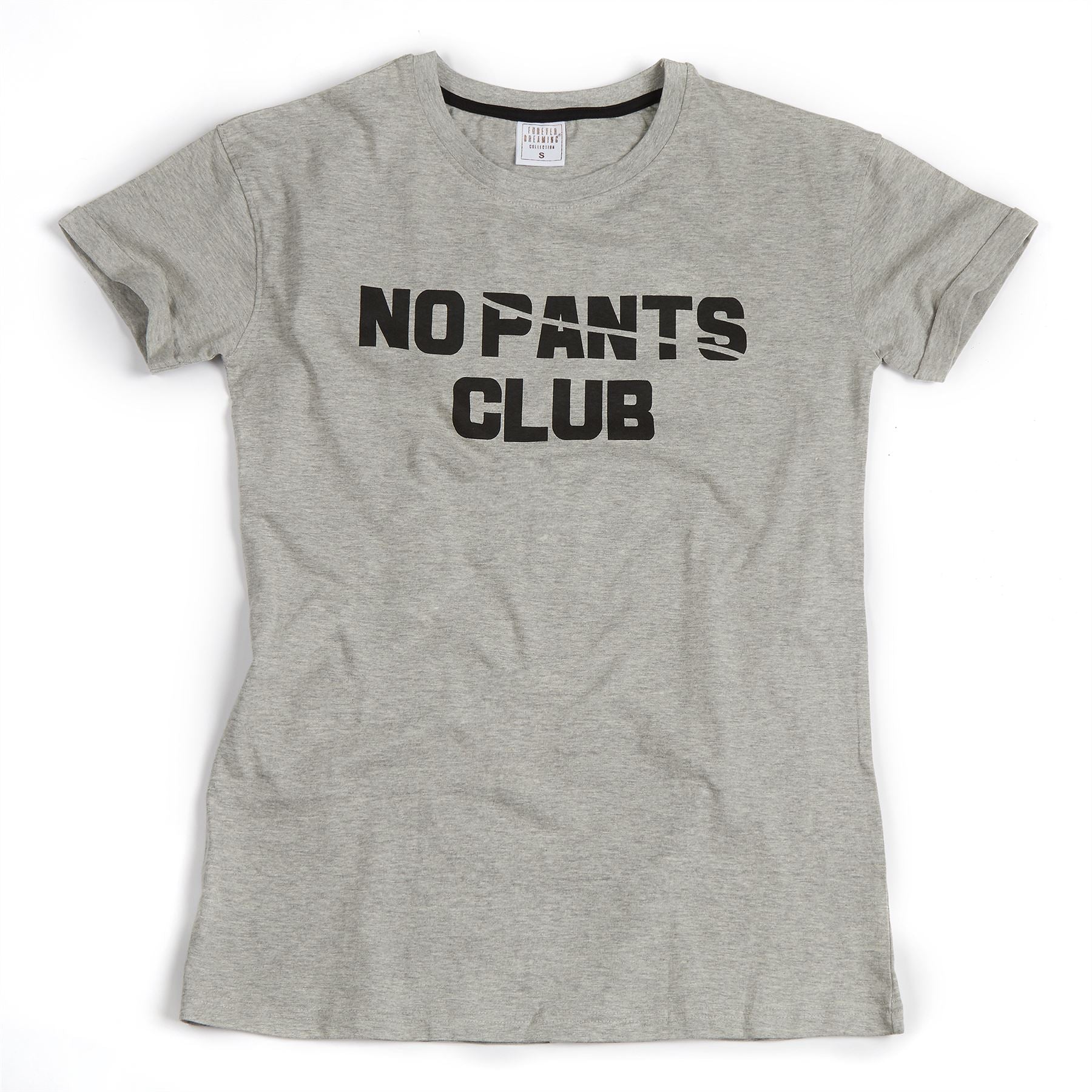 Women's shortie nightdress in grey, with 'No Pants Club' slogan.