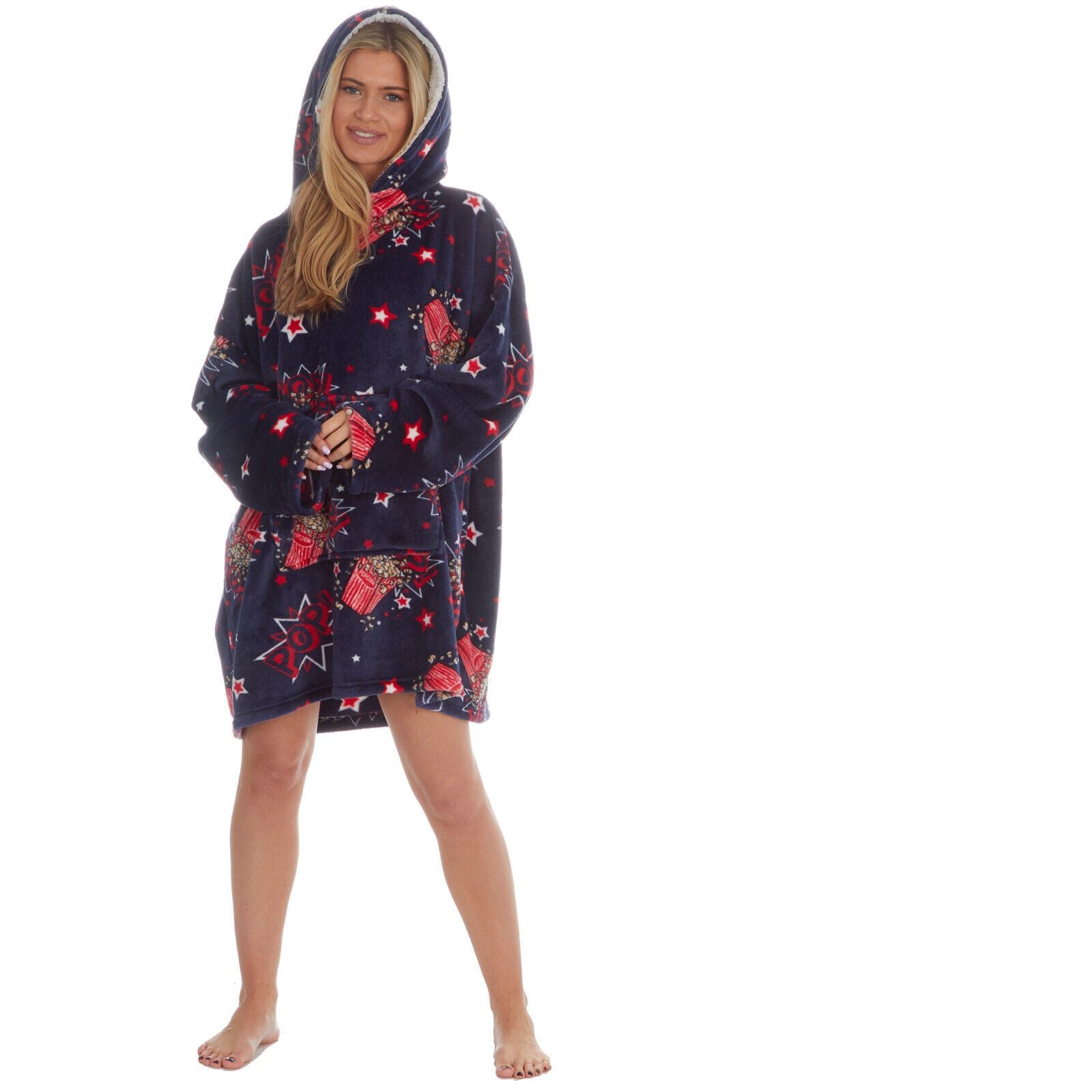 Forever Dreaming Womens Oversized Fleece Hoodie - Navy Popcorn