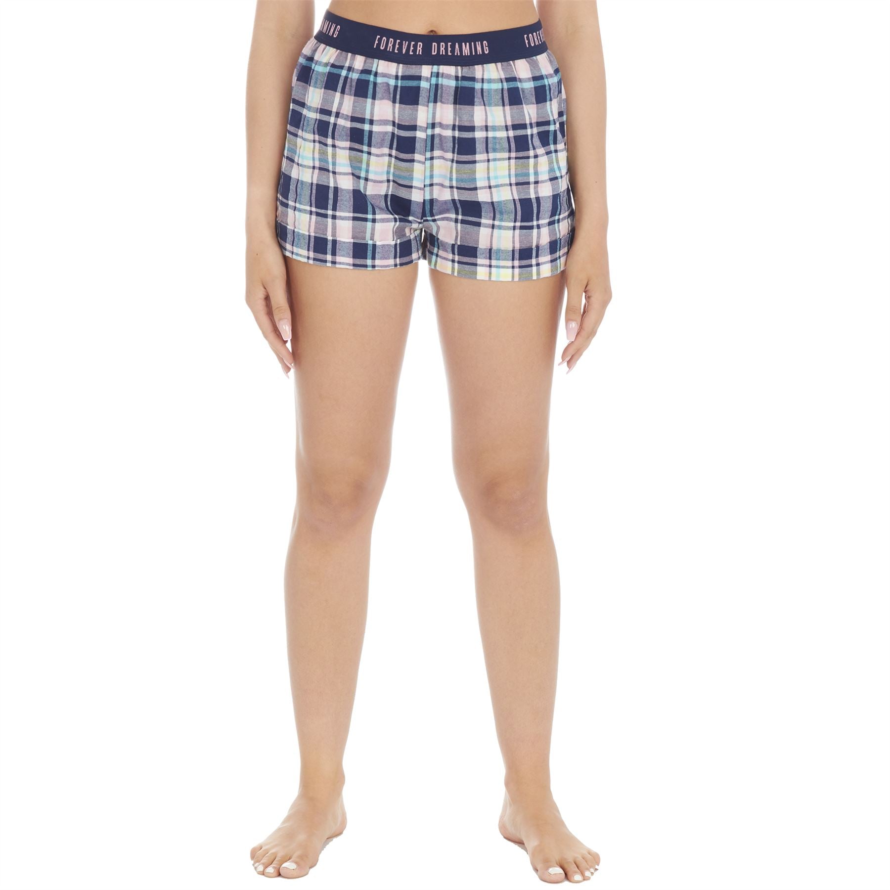 Forever Dreaming Womens Woven Check Lounge Shorts - Navy