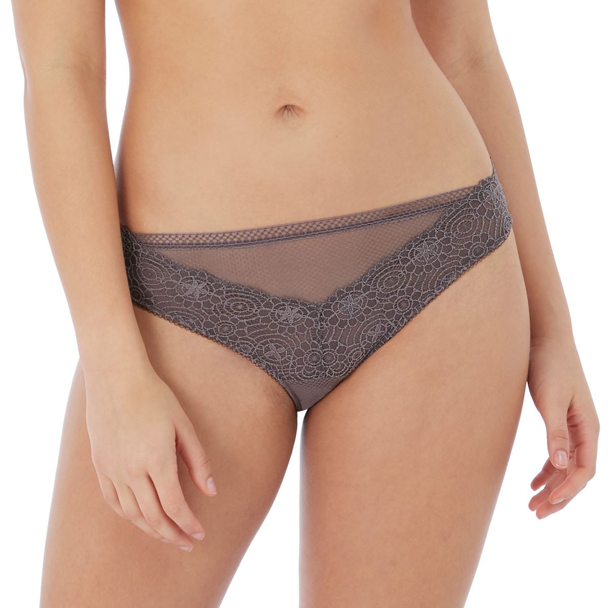 Freya Expression brief in shark, with crochet look lace.