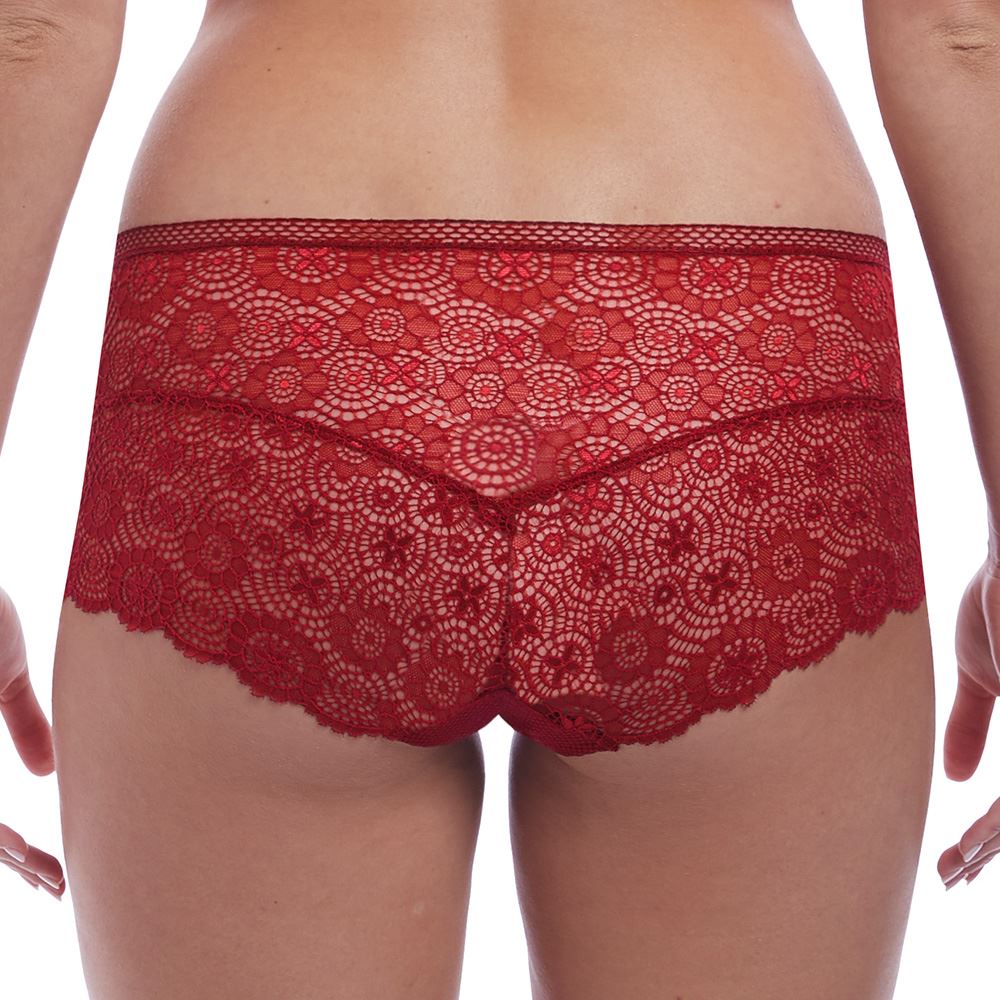 Freya Expression short in ruby, with crochet look lace.