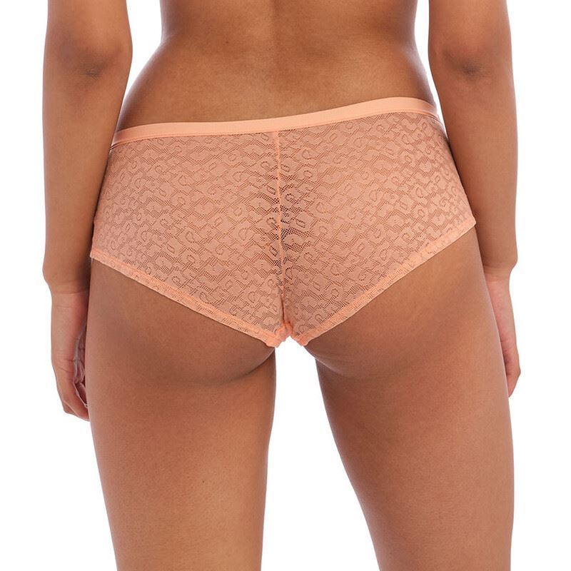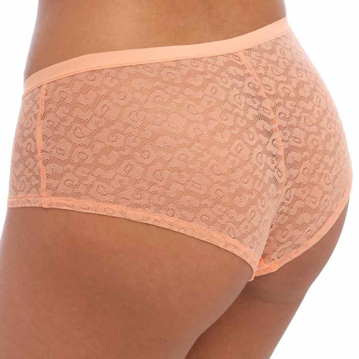 Freya Fancies hipster short in nectar, with lace detail and a ribbon bow in the centre.