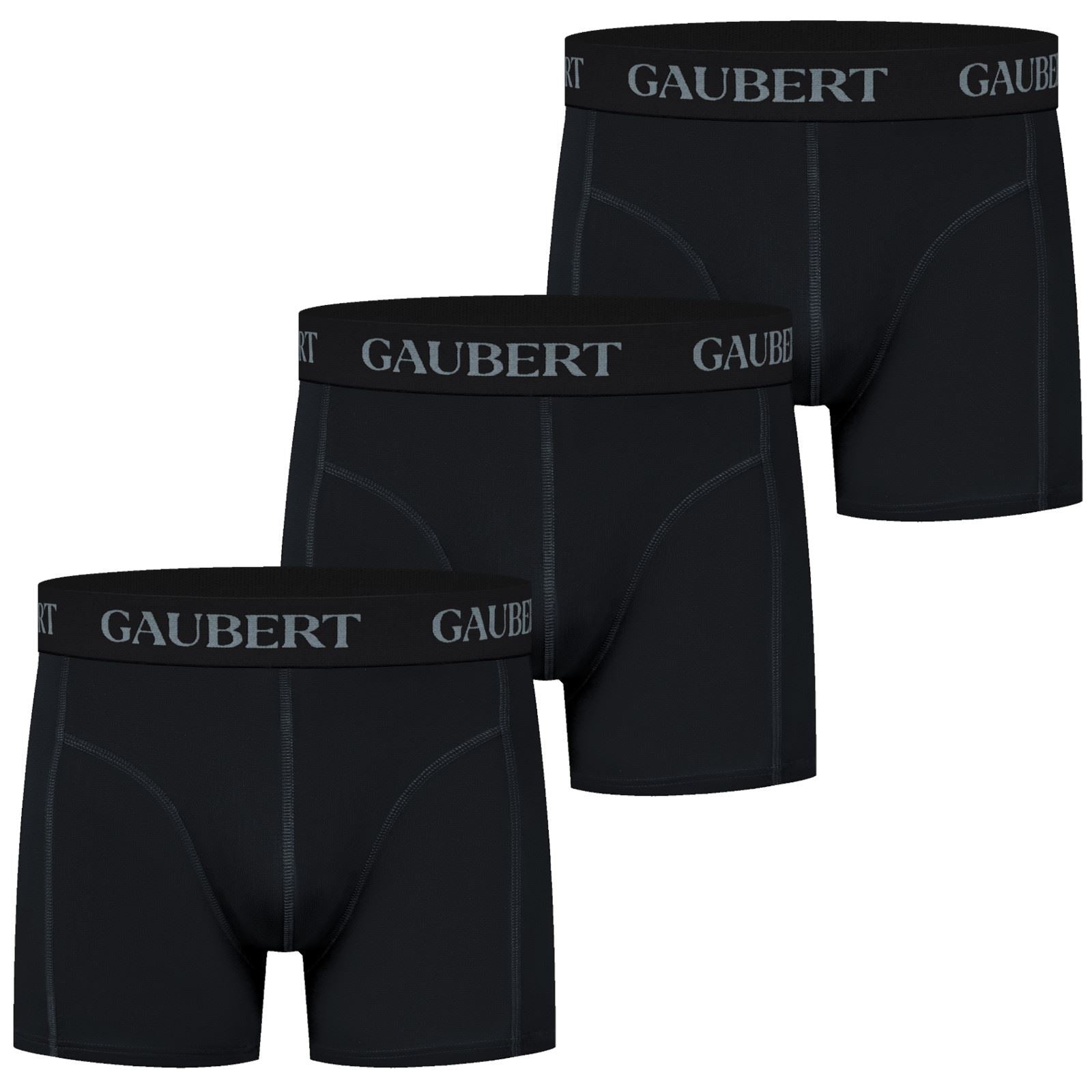 Men's Gaubert premium bamboo boxer shorts in black (3 pair pack) with 'Gaubert' branding on the waistband. Bamboo underwear feels soft and will stay fresh longer due to its moisture absorbing capacity.