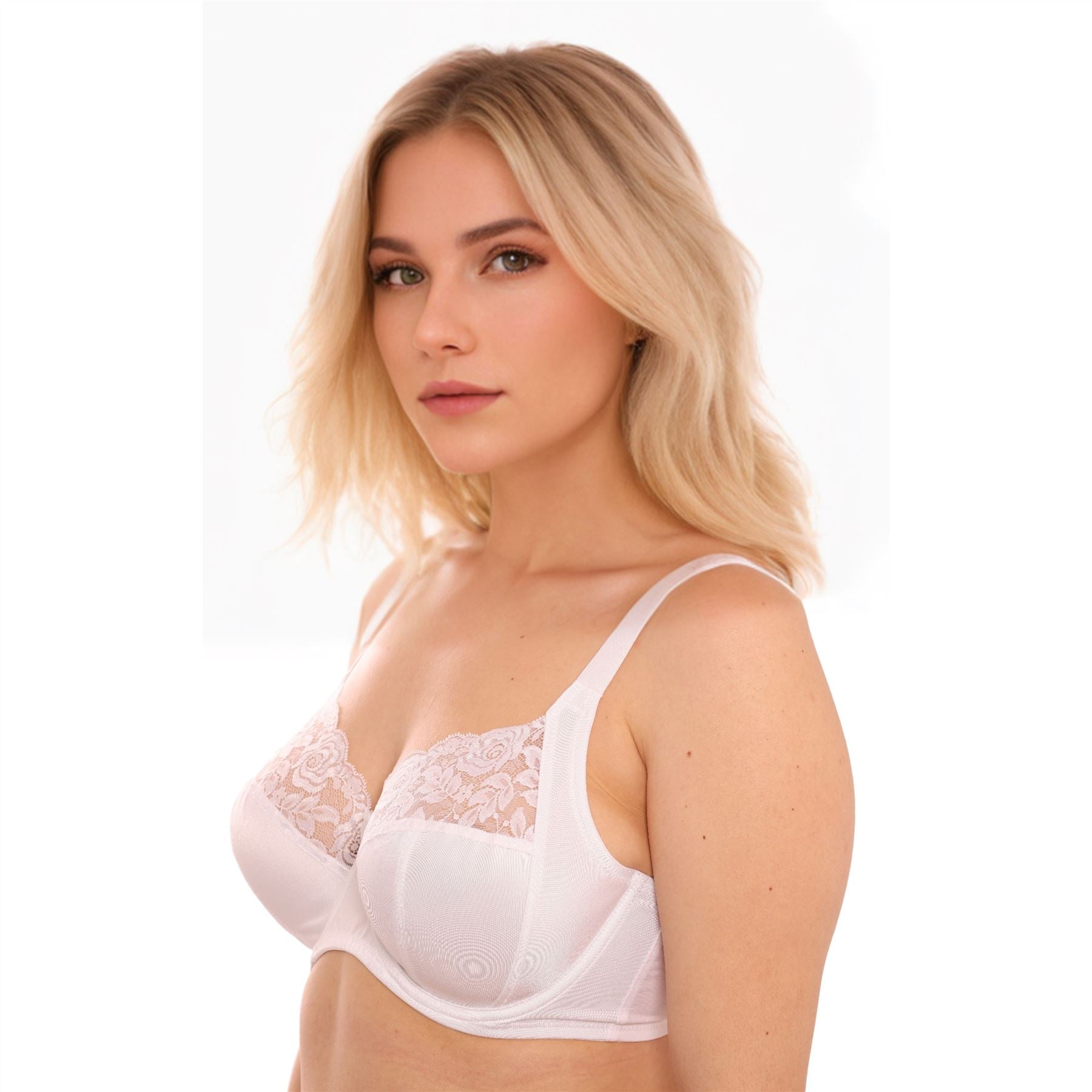 Gemm Full Cup Satin Floral Lace Bra - White