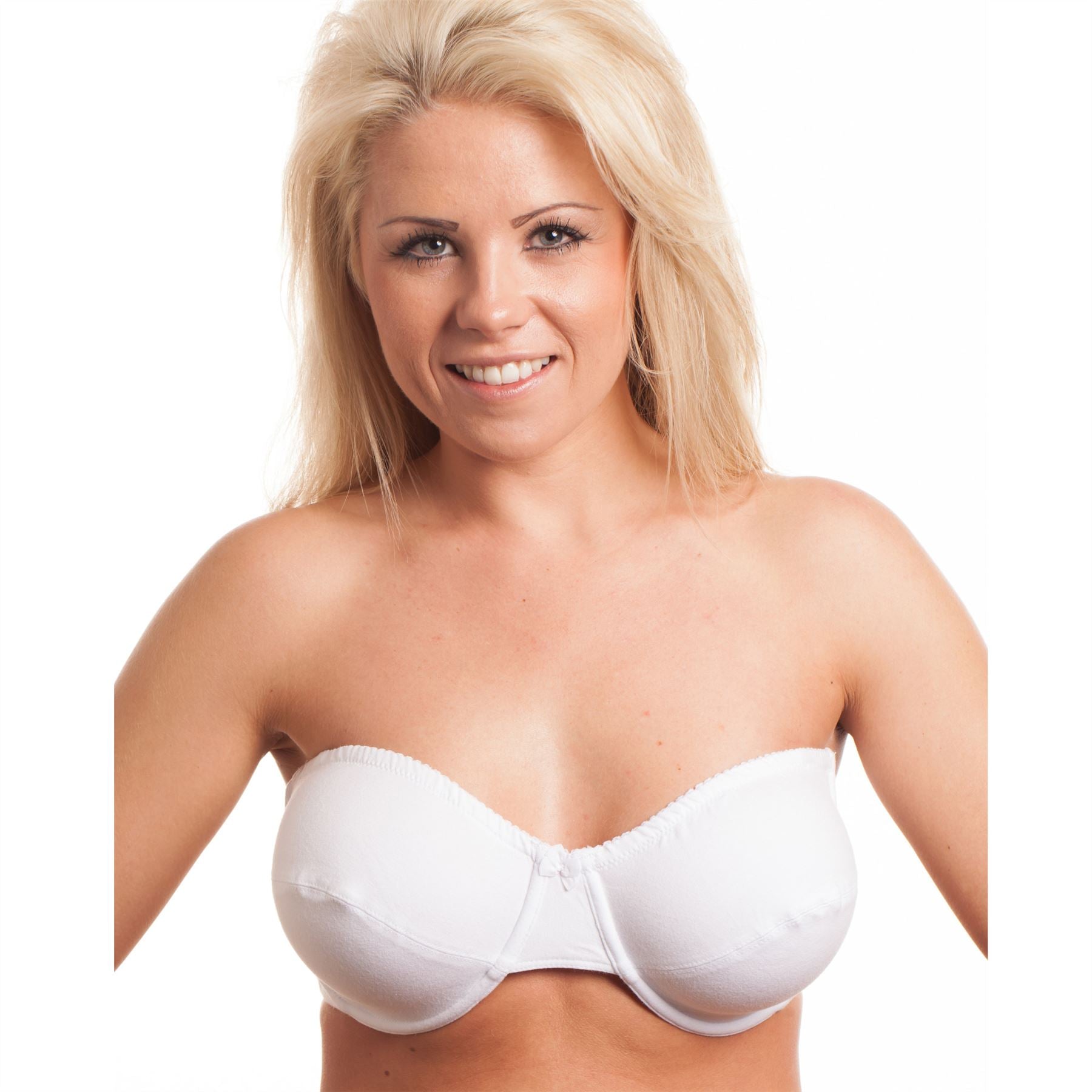 Gemm multiway bra in white. It is underwired, with unpadded cups and a 2 row hook and eye fastening. The bra features a silicone strip to keep the garment in place and fully adjustable straps, which are detachable. It can be worn strapless, with normal or crossover straps.