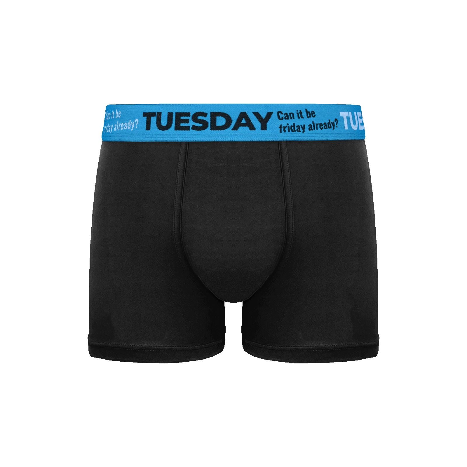 Men's soft cotton trunks (7 pair pack) with one pair for each day of the week. They have a coloured waistband featuring the day of the week and a novelty slogan.