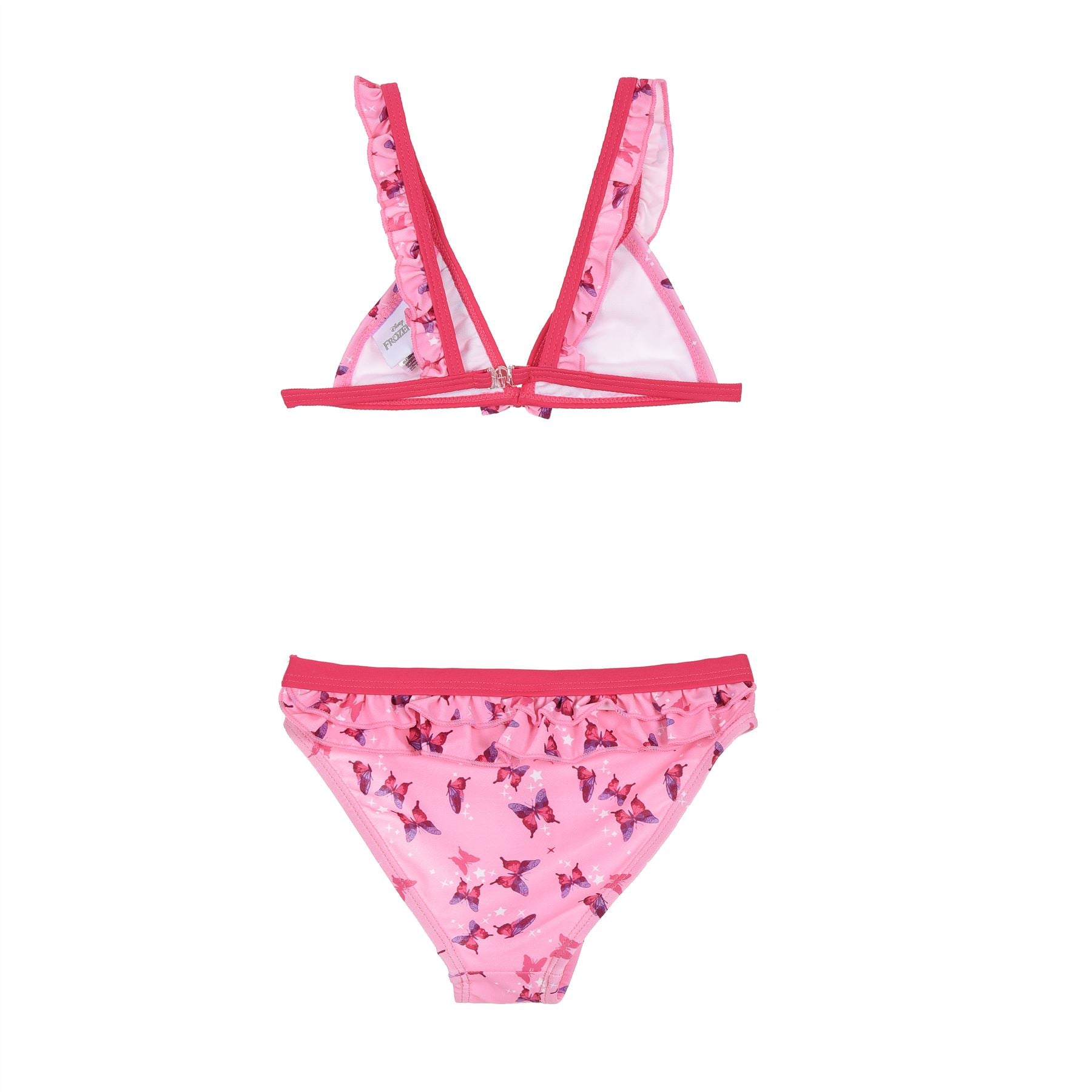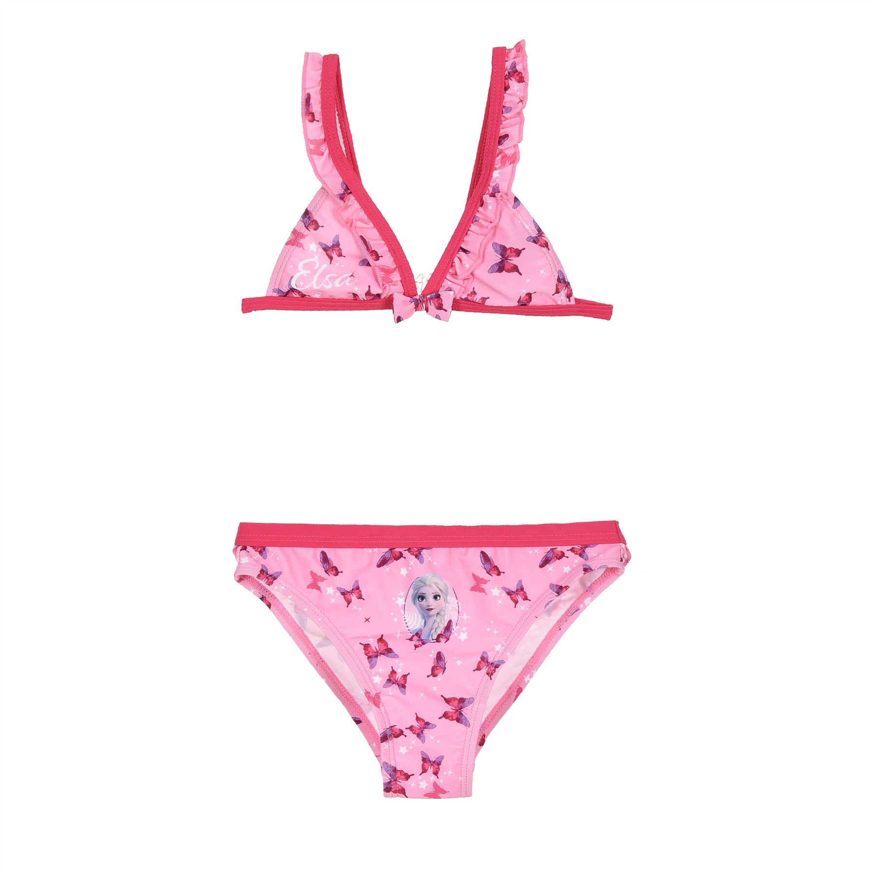 Girls' Disney Frozen 2 triangle bikini set in pink, with printed butterfly detail.