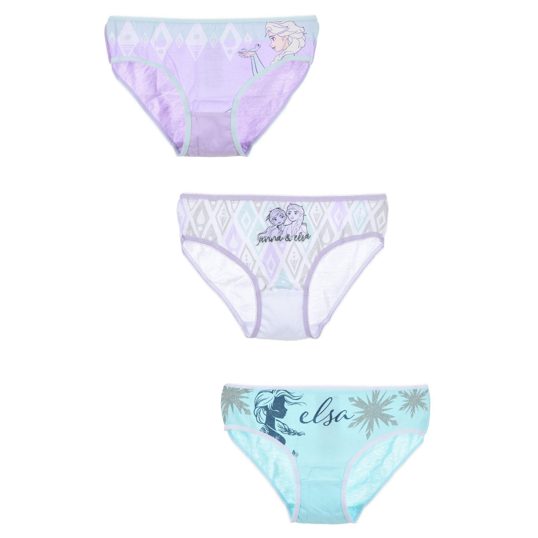 Girls Disney Frozen briefs 3 pack, with one design in each style.
