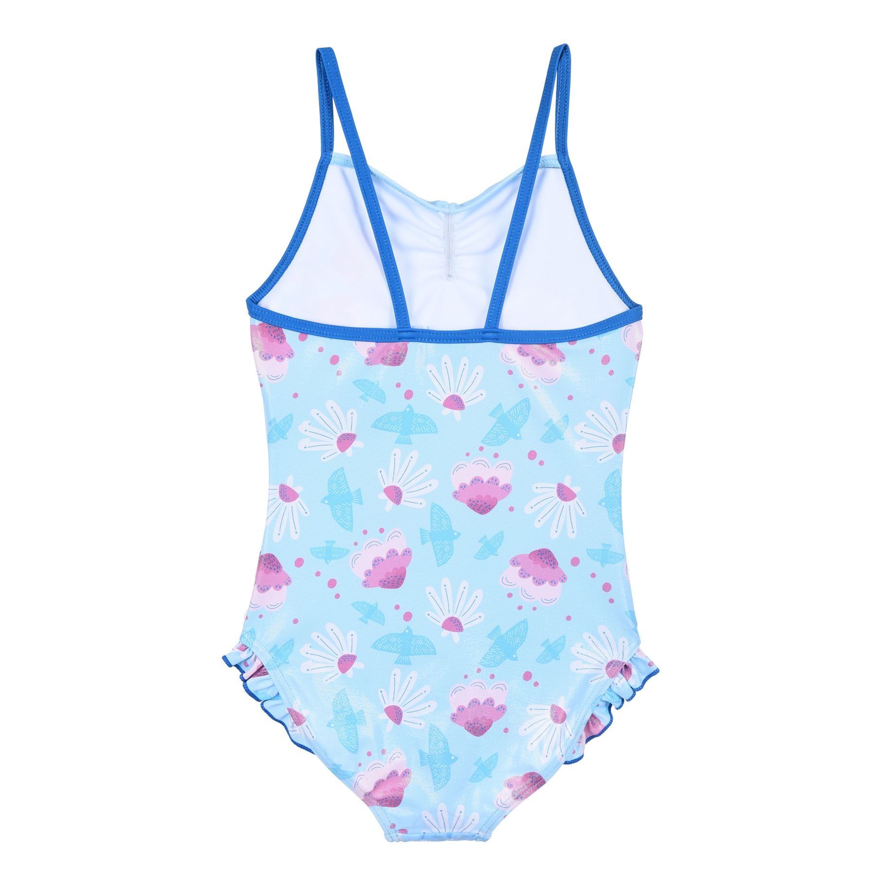 Girls' Disney Frozen Elsa swimsuit in blue, with a glitter print design.