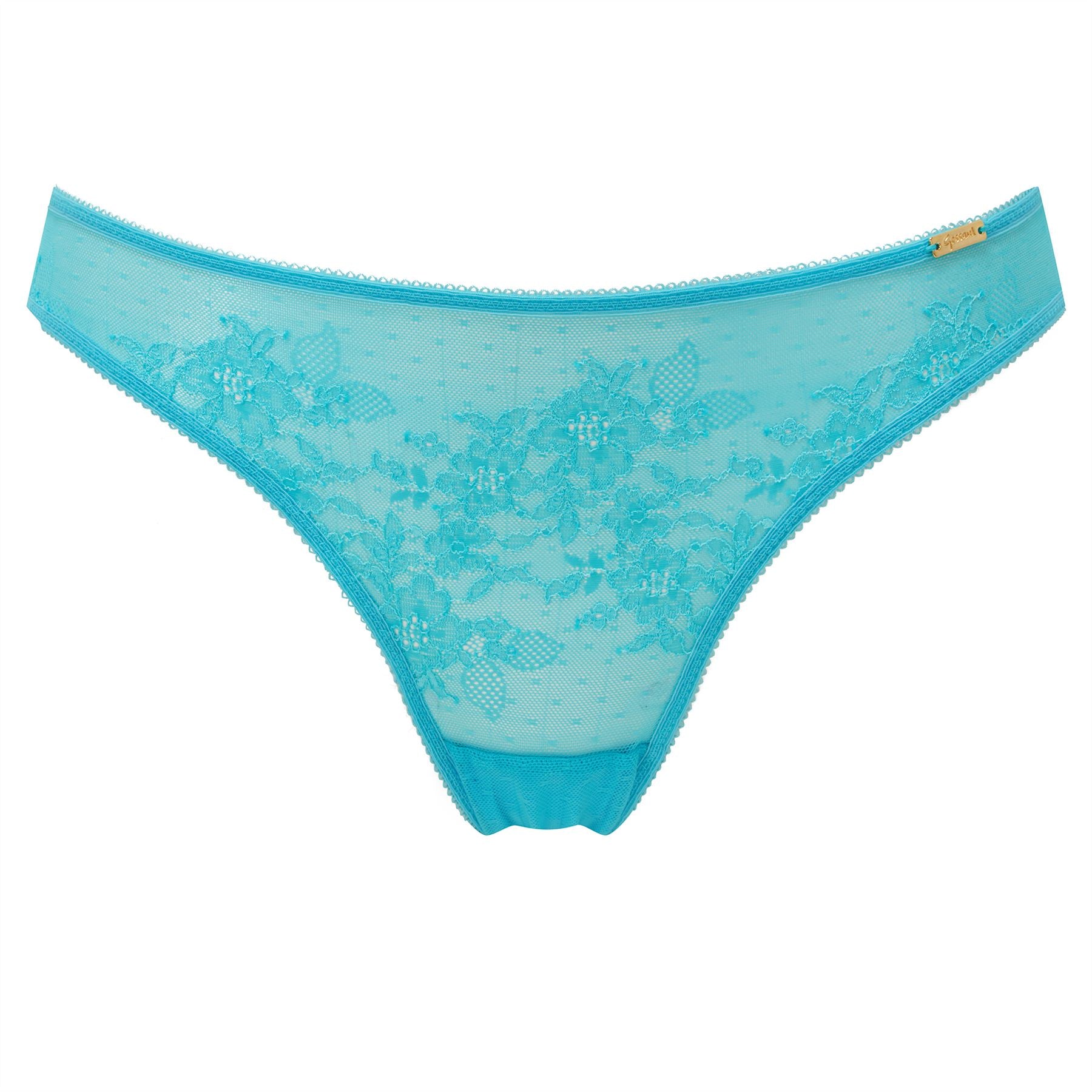 Gossard Glossies lace brief in turquoise sea, with delicate floral lace and gold Gossard signature plate detail.