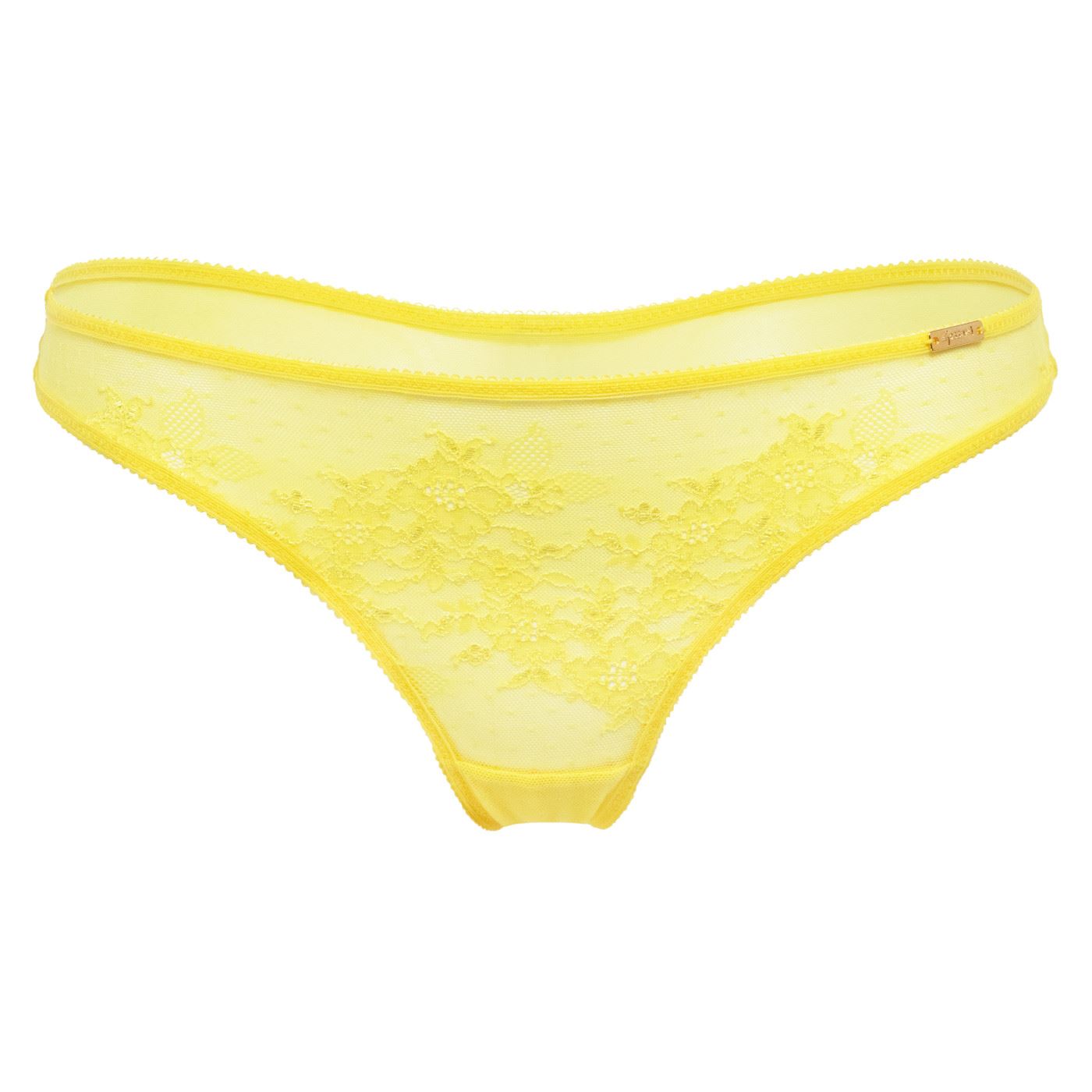 Gossard Glossies lace thong in primrose, with gold Gossard signature detail.