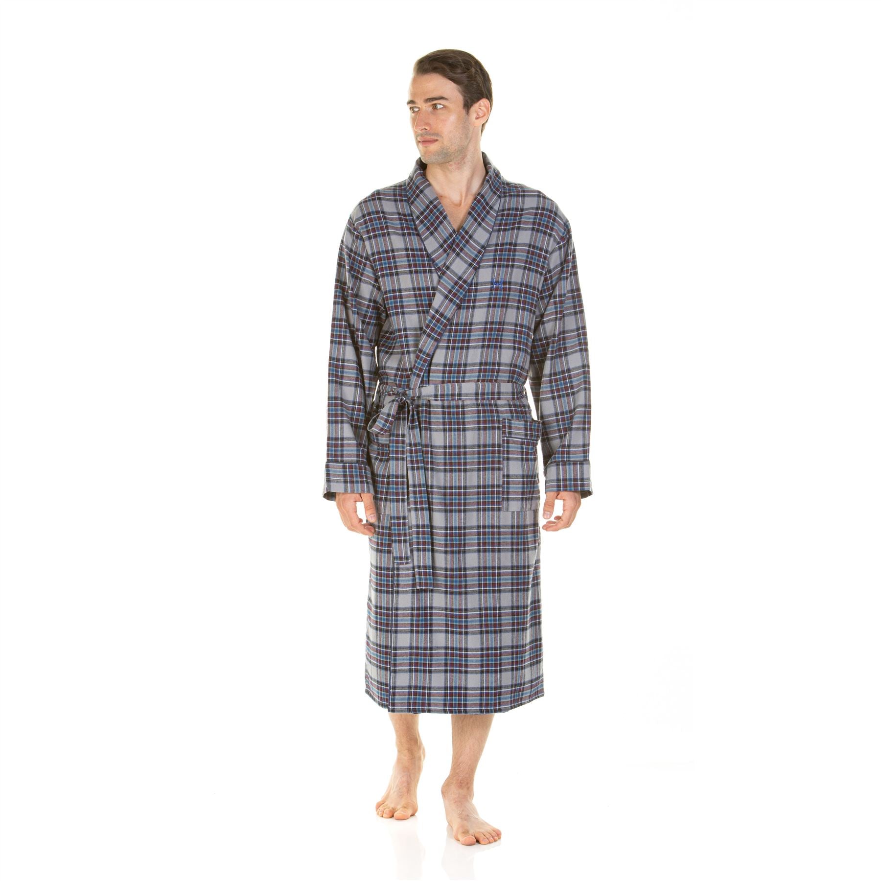 Haigman Mens Brushed Cotton Robe - Grey Check