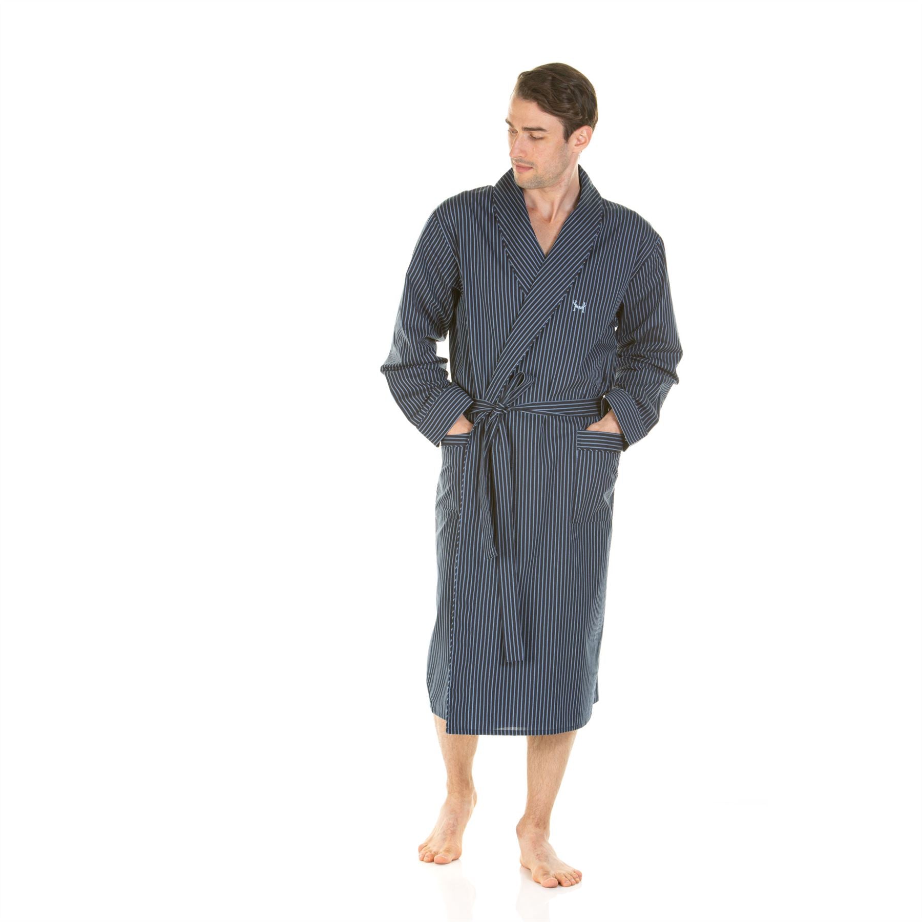 Haigman Mens Pure Cotton Robe - Navy Stripe