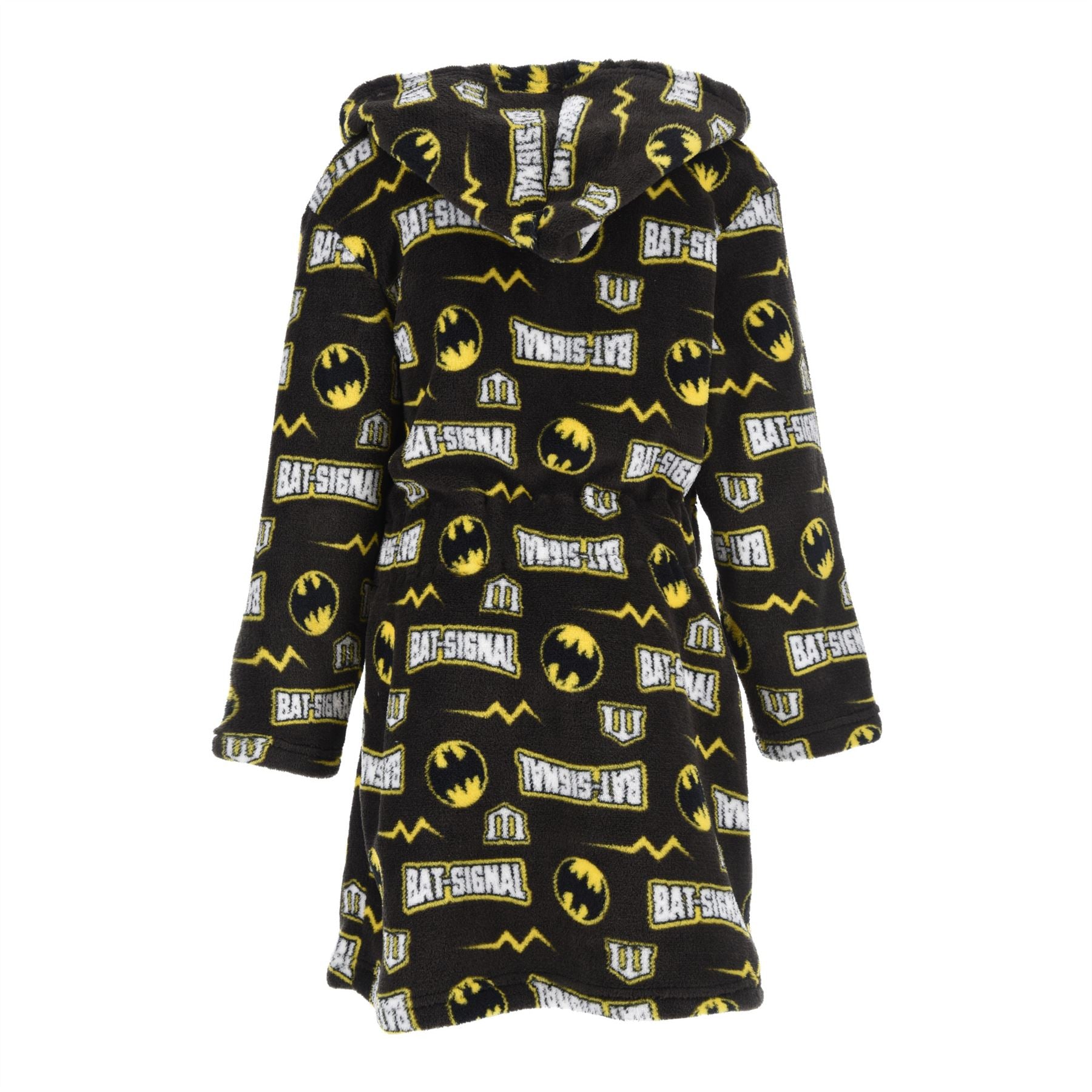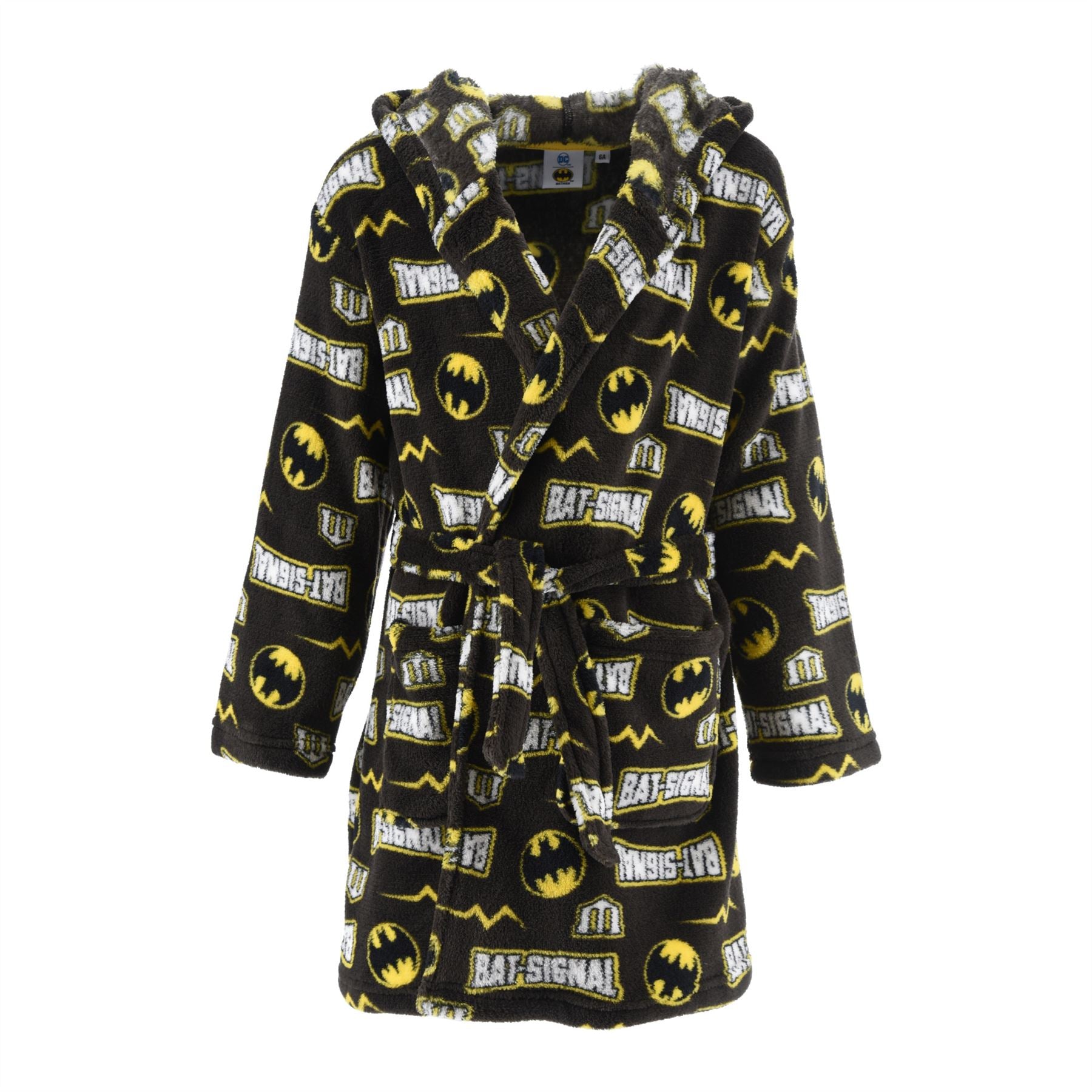 Kids' Batman hooded fleece robe with logo detail, pockets and a matching tie belt. 4 Years (to fit height 104cm), 6 Years (to fit height 116cm), 8 Years (to fit height 128cm), 10 Years (to fit height 140cm).