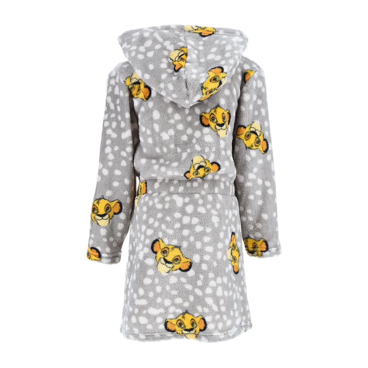 Kids' Disney The Lion King fleece robe with printed detail and a hood. It has pockets and a matching tie belt.