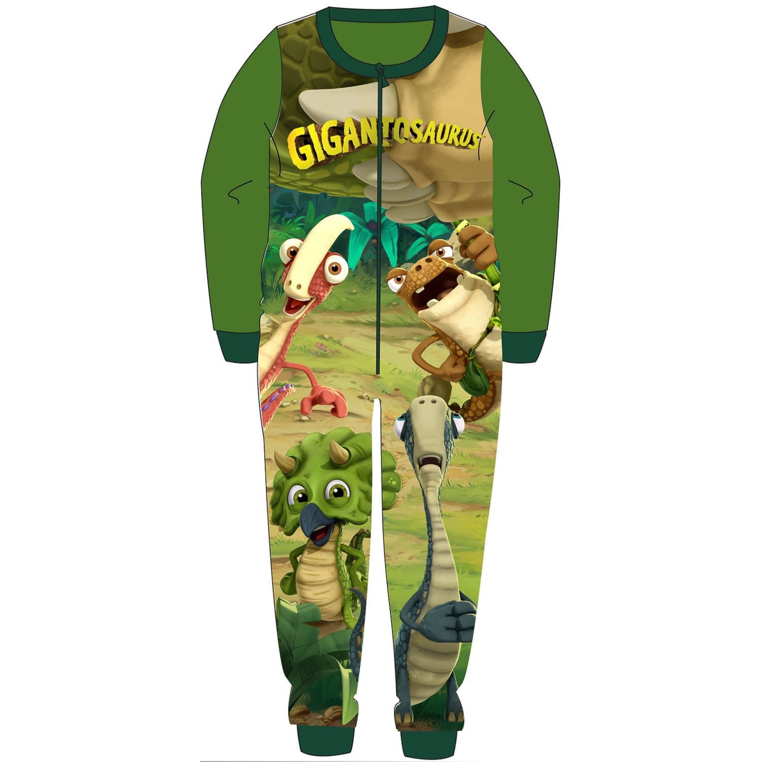 Kids' microfleece Gigantosaurus onesie, with ribbed cuffs and ankles, a zip up front and sublimated print on the front.