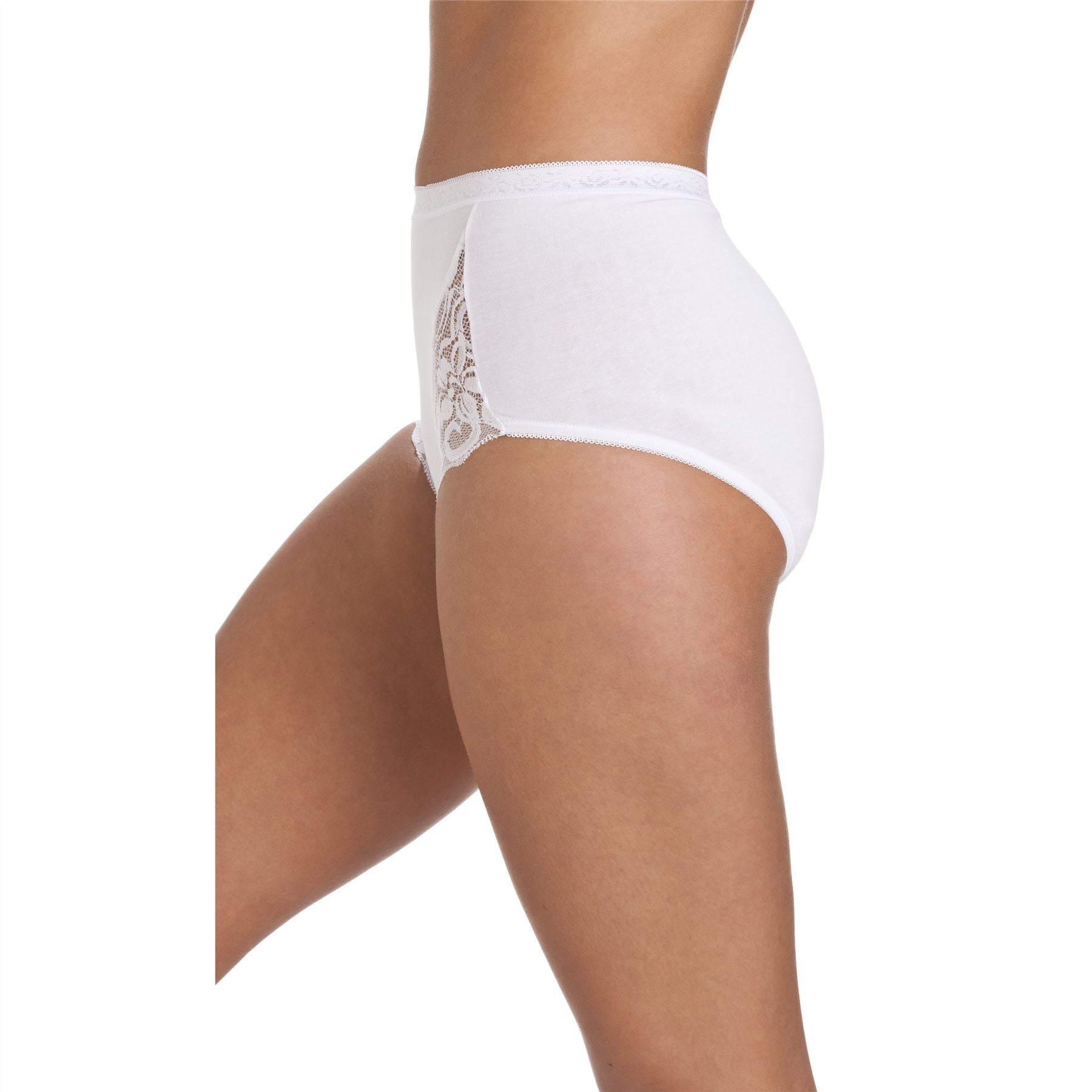 La Marquise lace maxi brief in white (3 pair pack), featuring full coverage, soft threads and elastics for ultimate comfort and combed cotton.