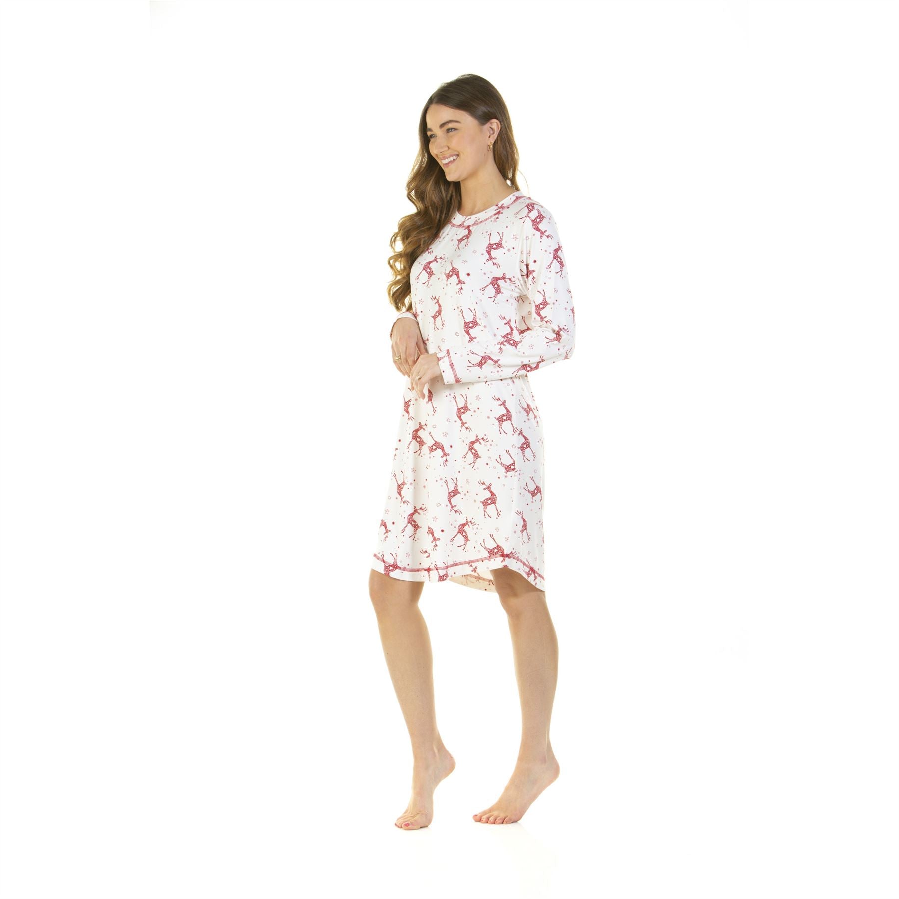La Marquise Womens Jersey Knit Reindeer Nightdress - Ivory