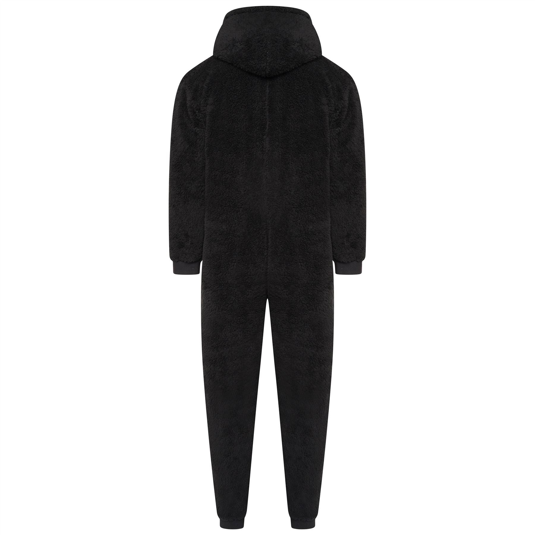 Loungeable Mens Sherpa Fleece Hooded Onesie - Black