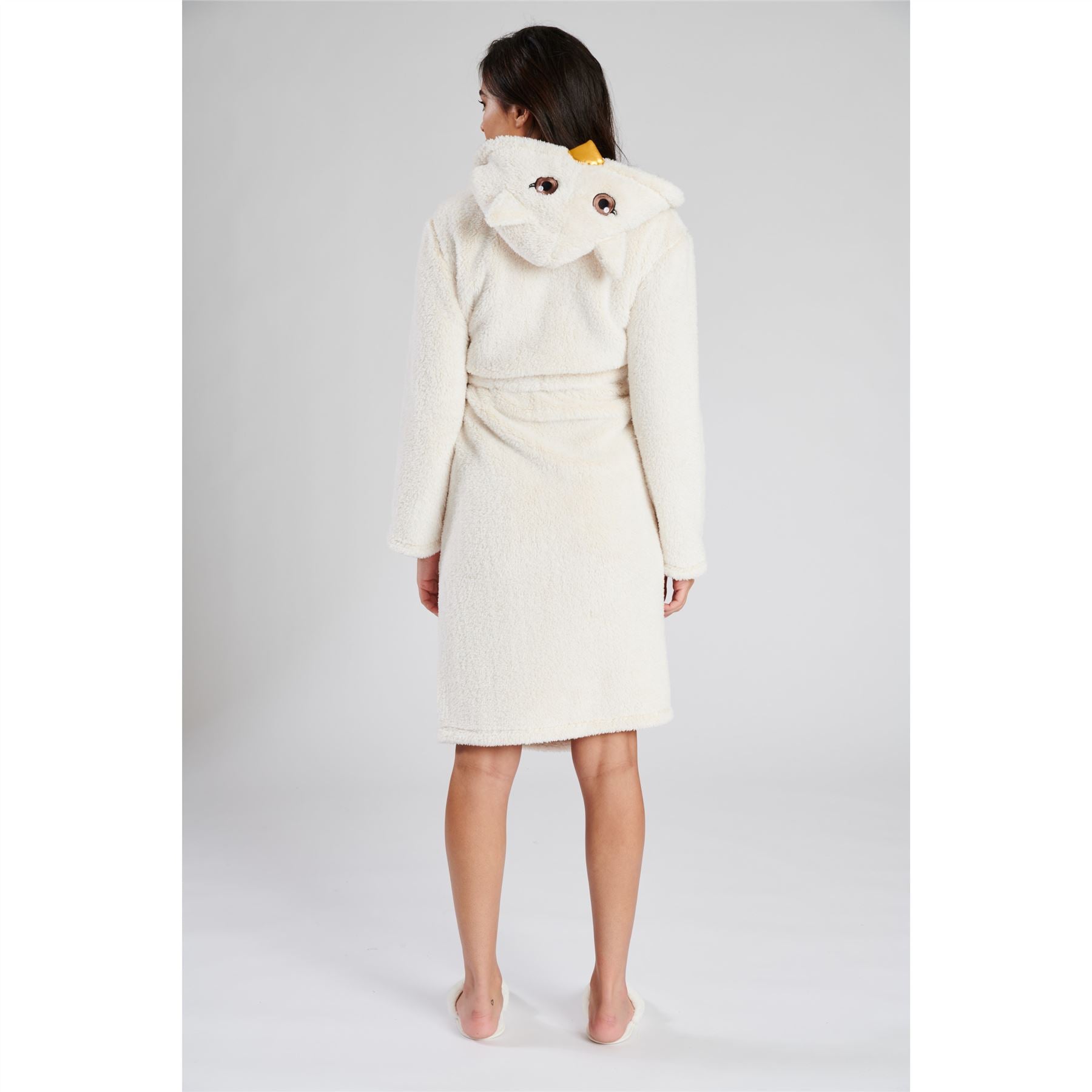 Loungeable Womens Owl Fleece Hooded Robe - Beige