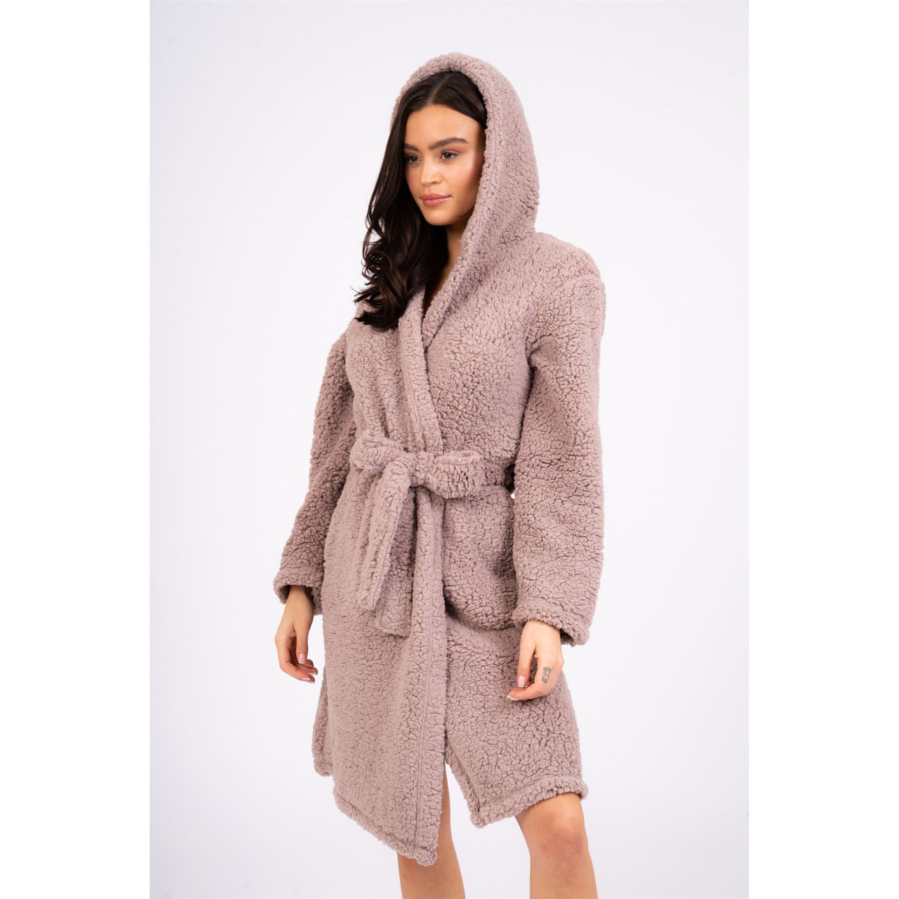 Loungeable Womens Sherpa Fleece Hooded Robe - Taupe