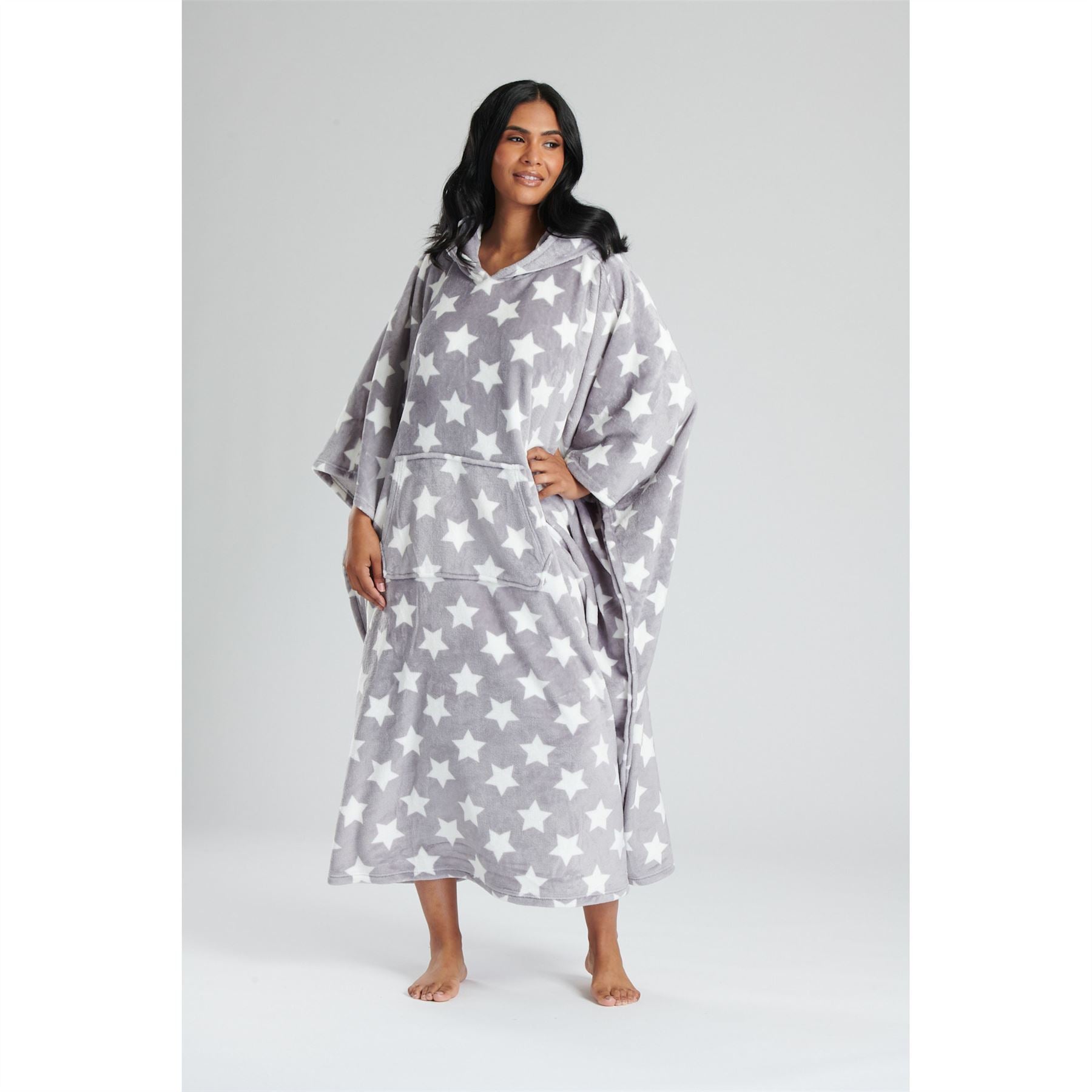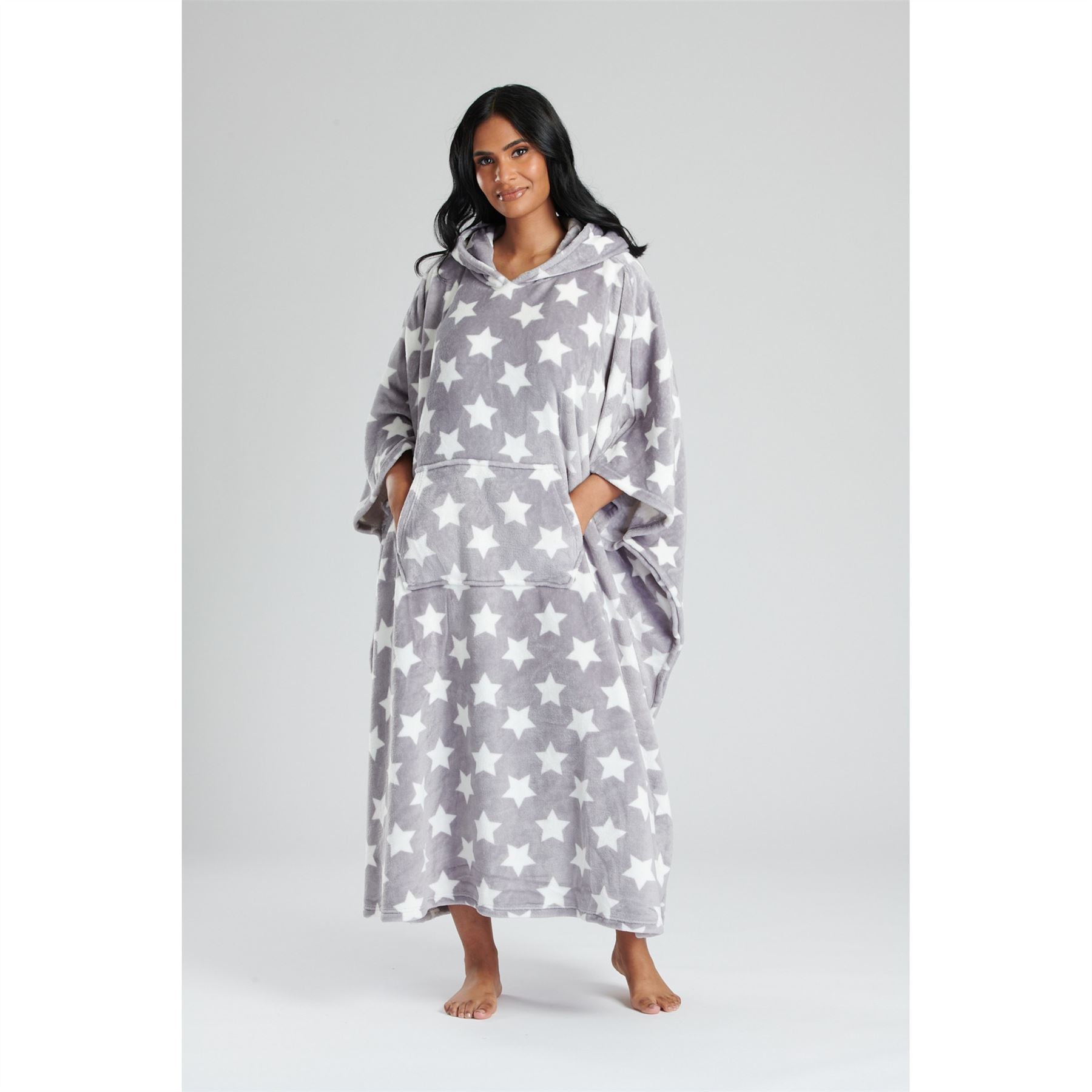 Loungeable Womens Star Long Luxury Fleece Hooded Poncho - Grey