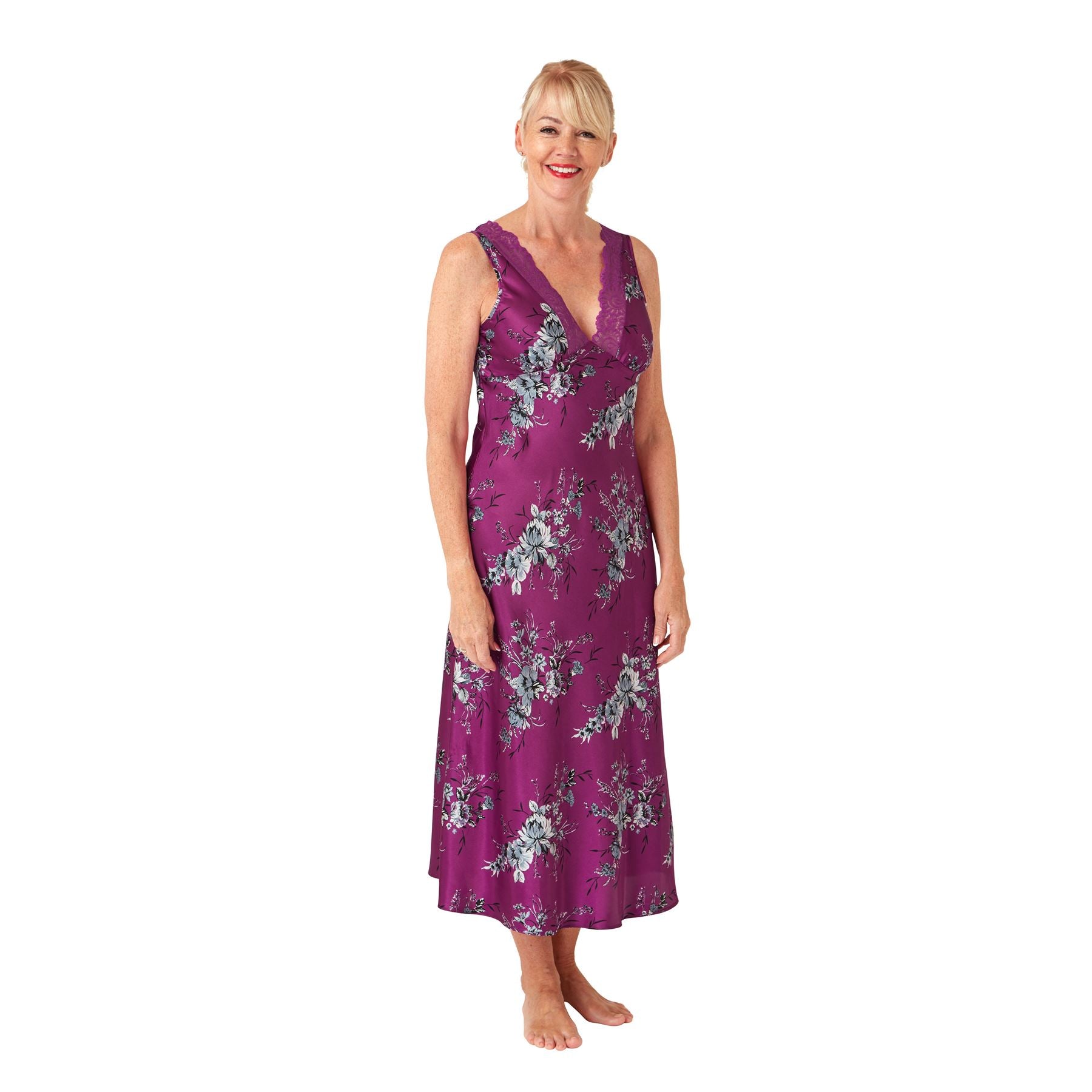 Marlon Womens Long Floral Satin Nightdress - Fuchsia