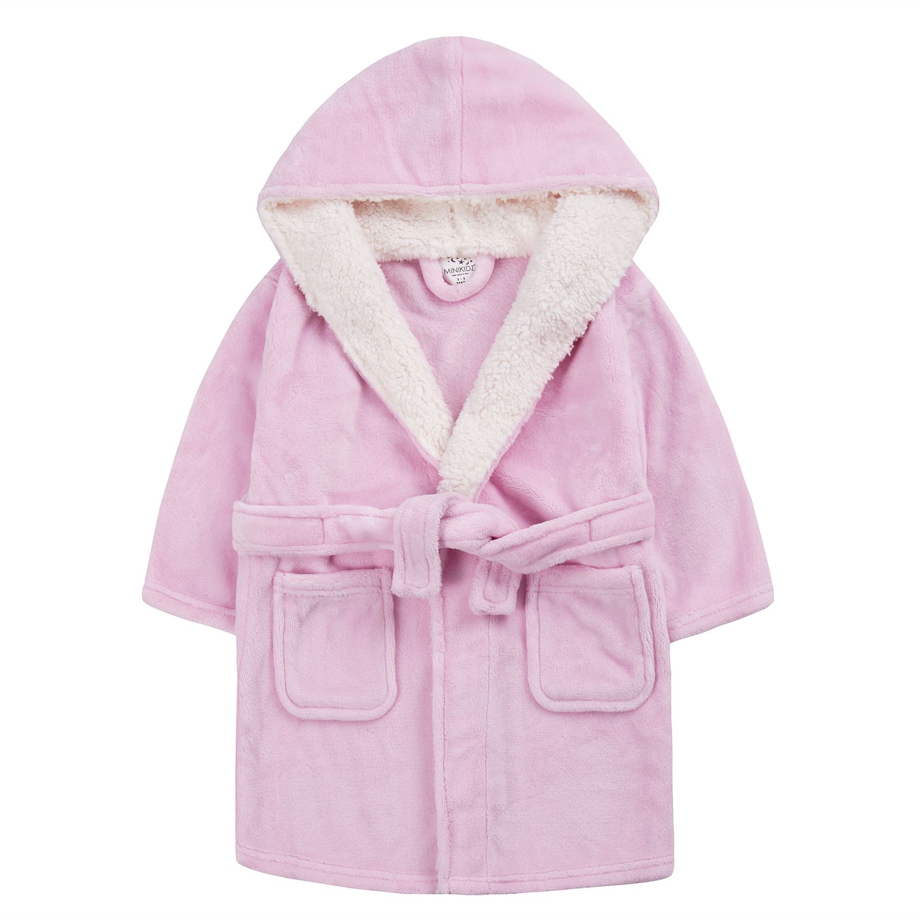 Minikidz Kids Sherpa Hooded Plush Fleece Robe - Pink