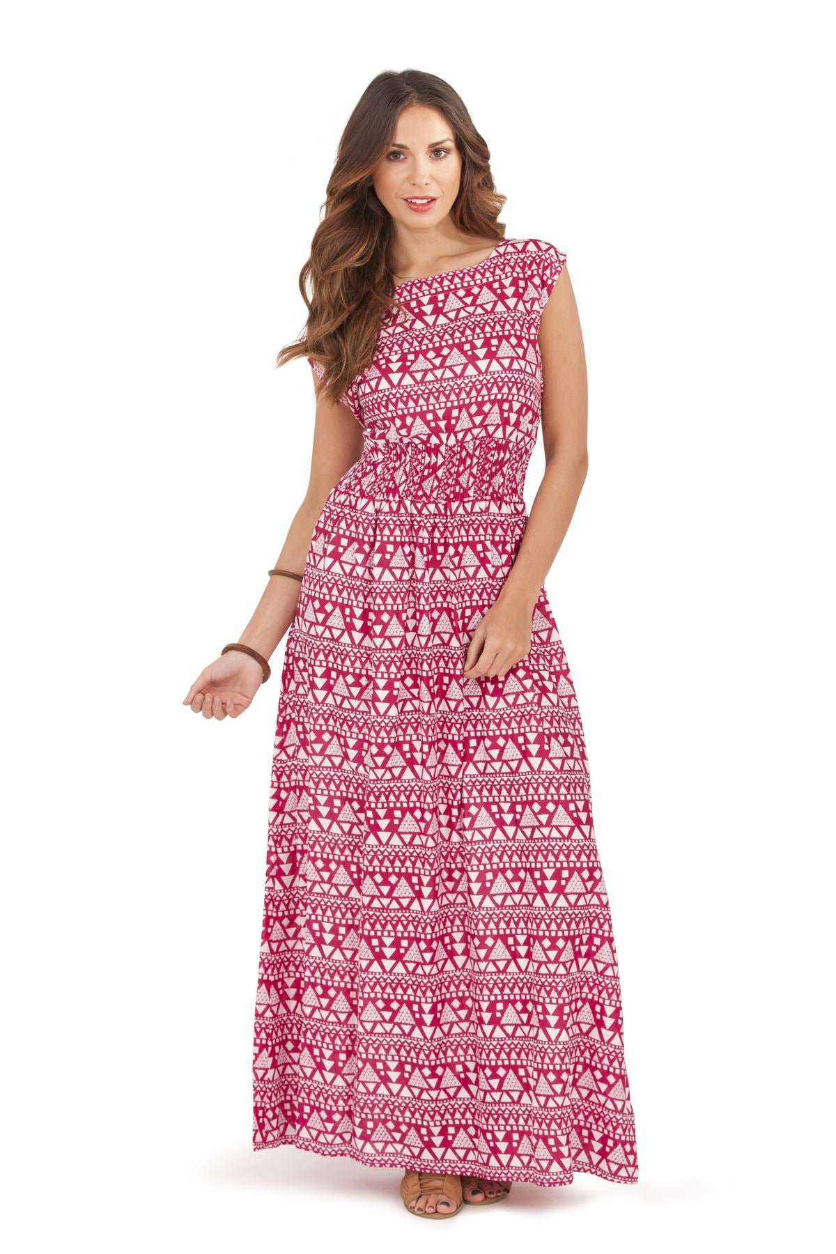 Pistachio Round Neck Multi Pattern Maxi Dress - Red